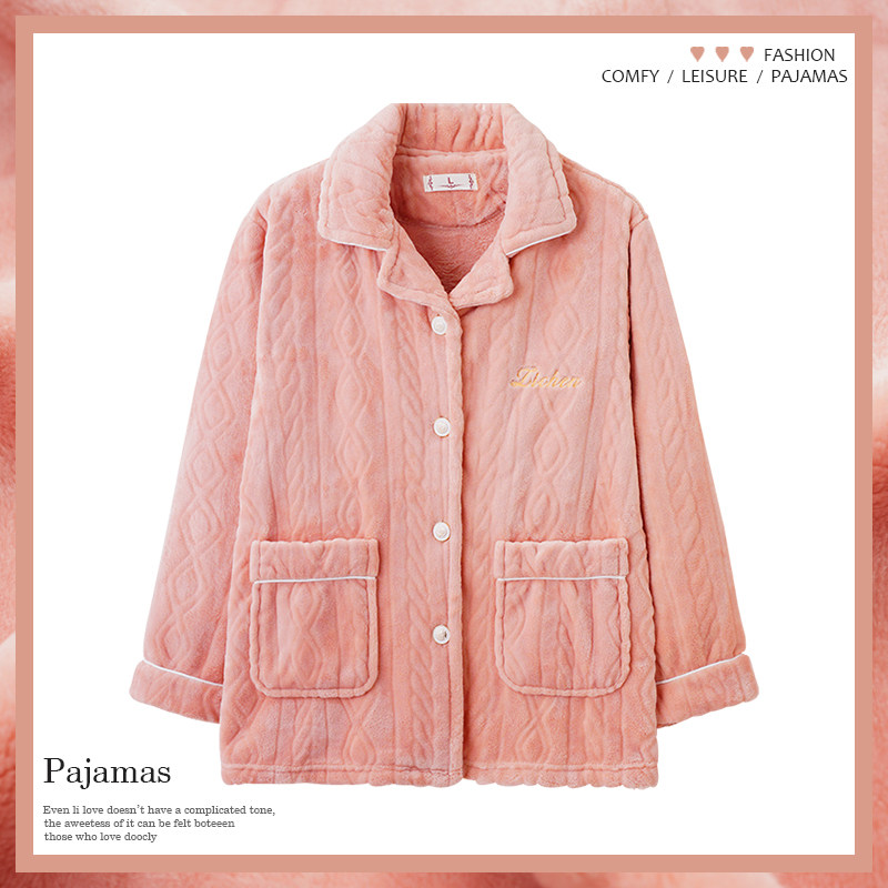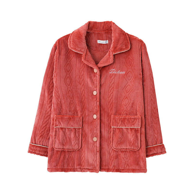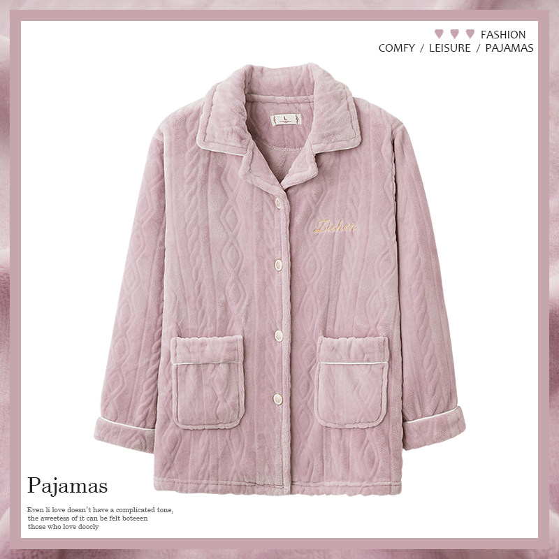 2025新款睡衣女款上衣单件秋冬季珊瑚绒长袖中年妈妈法兰绒家居服