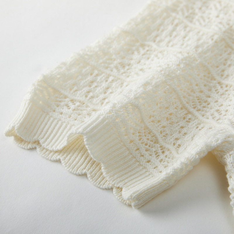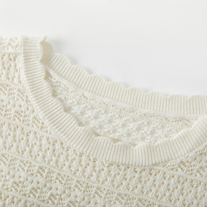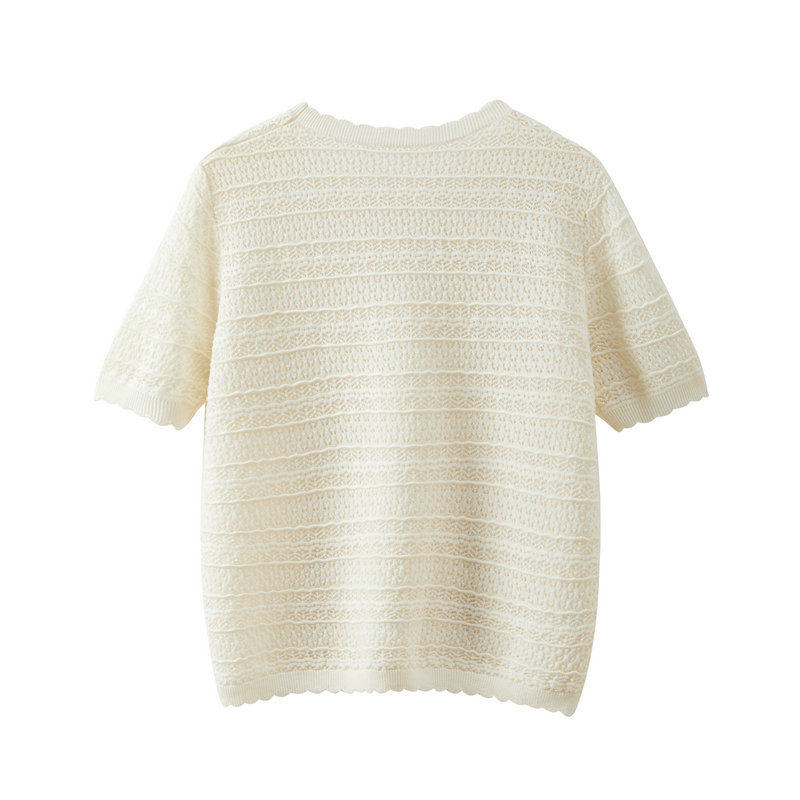 2025夏季短袖t恤桑蚕丝针织衫女款纯色圆领洋气薄款镂空打底上衣