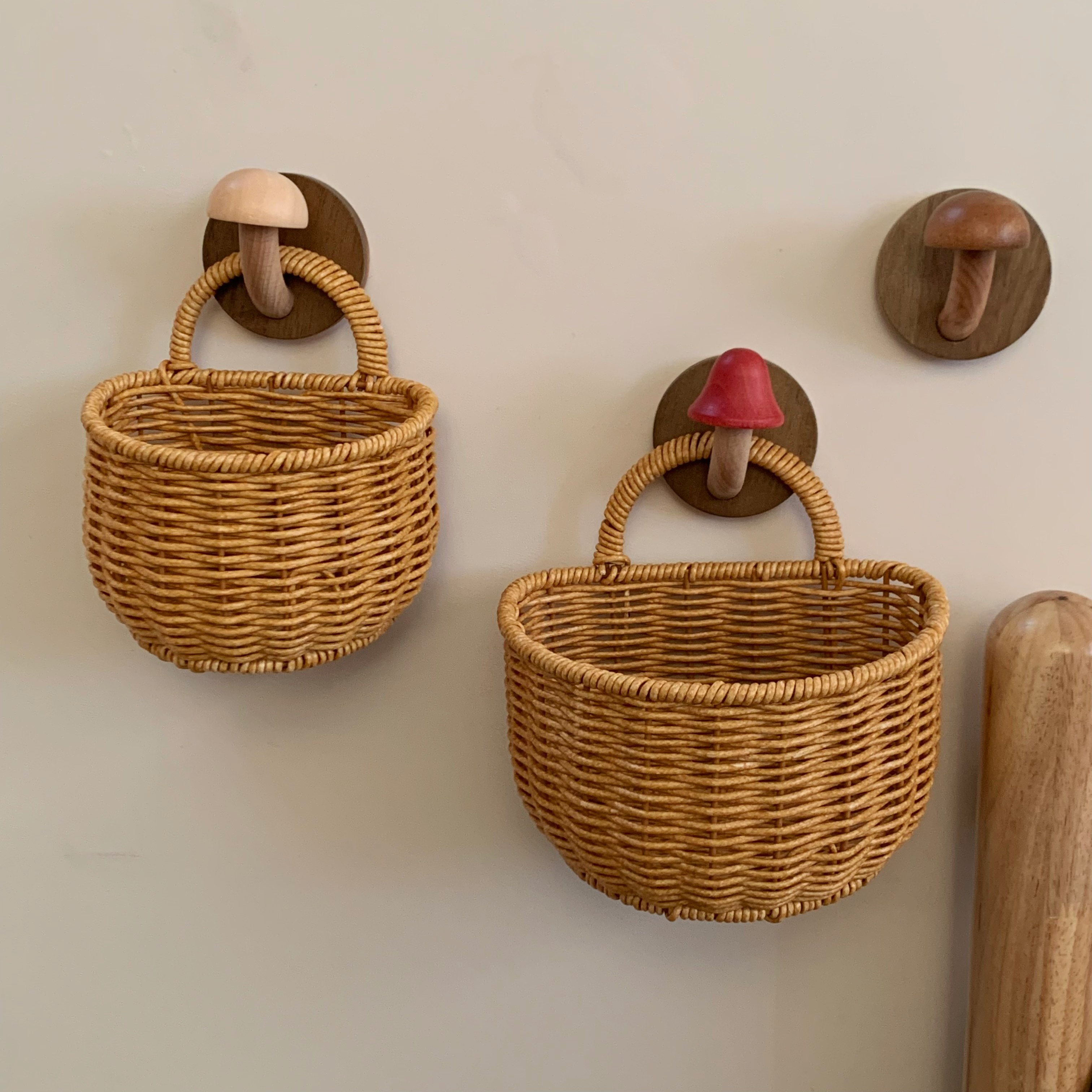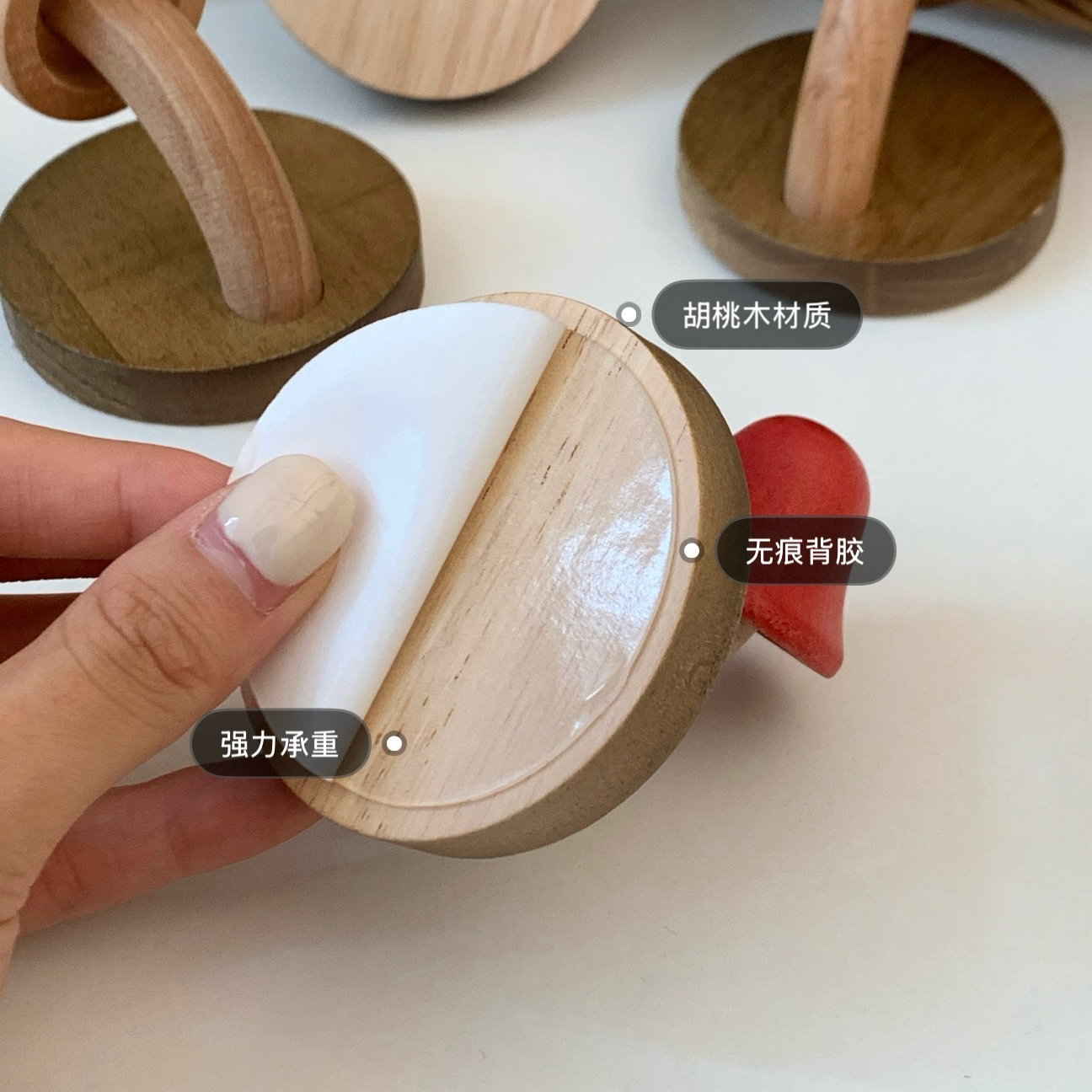 实木挂钩免打孔门挂衣钩墙面上可爱蘑菇木质挂衣架创意衣帽钩粘钩