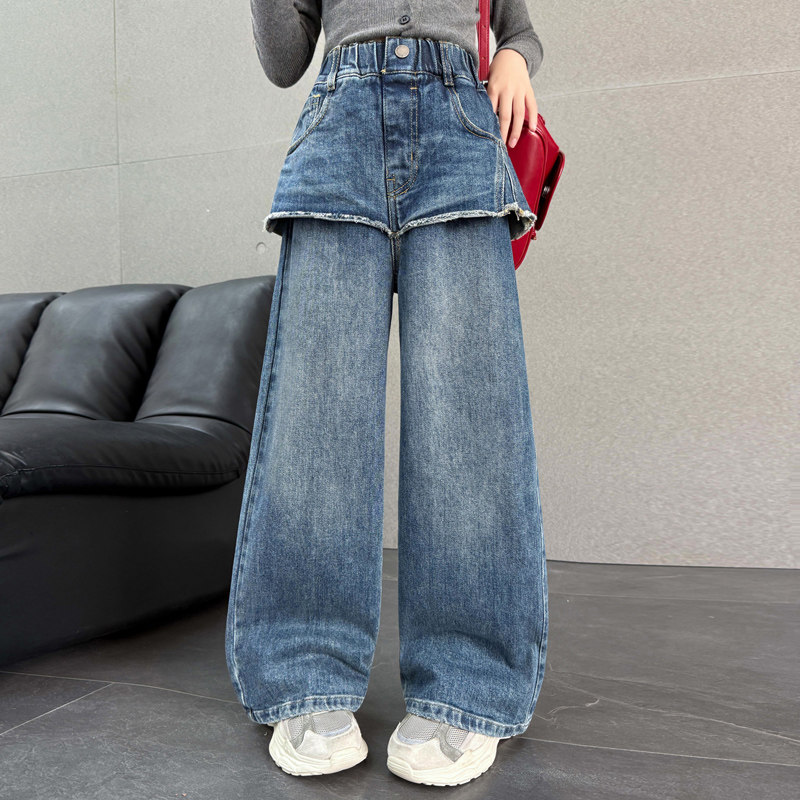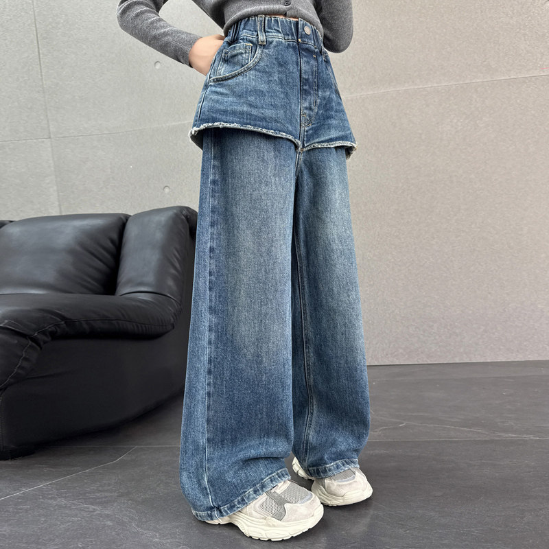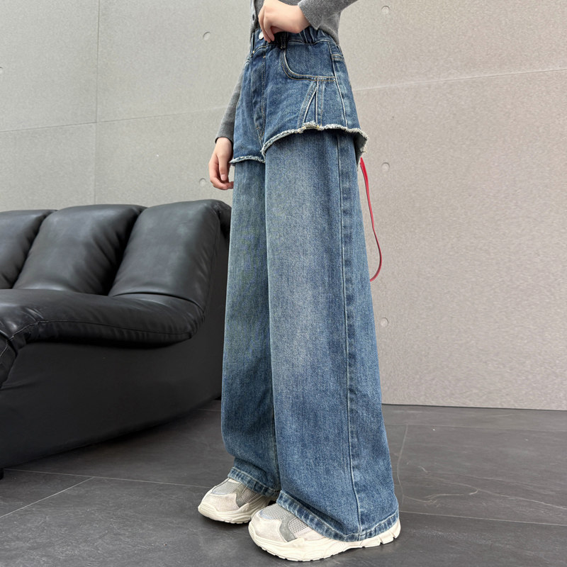 女大童牛仔裤2026新款春装初中生女孩裤子青少年春秋款阔腿直筒裤