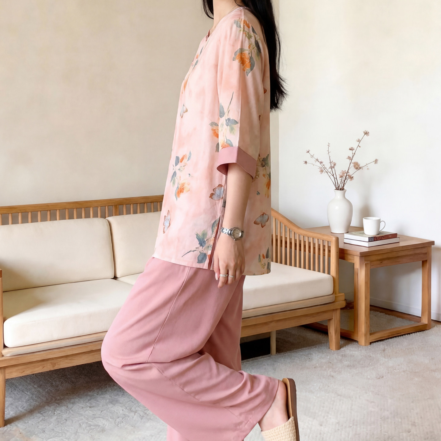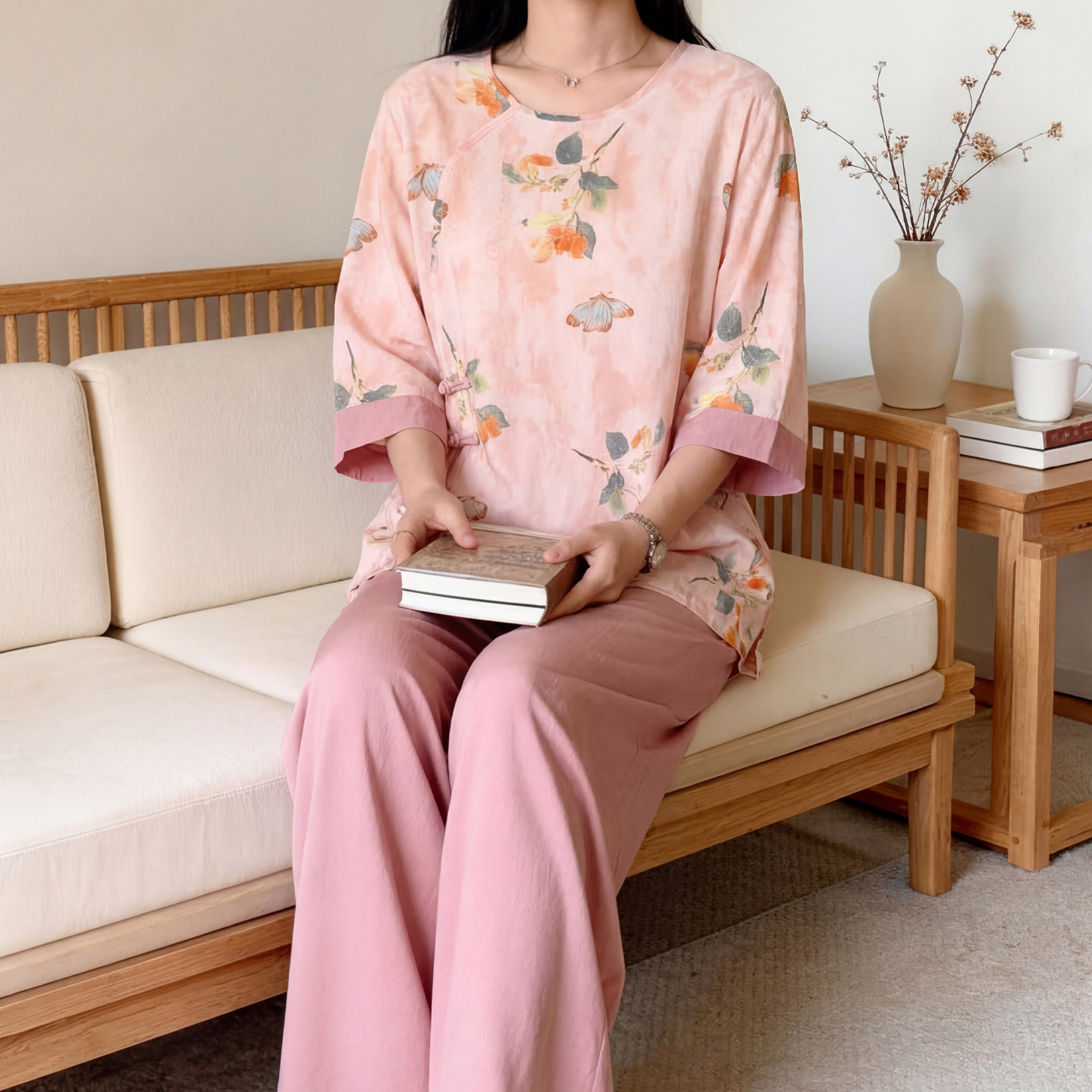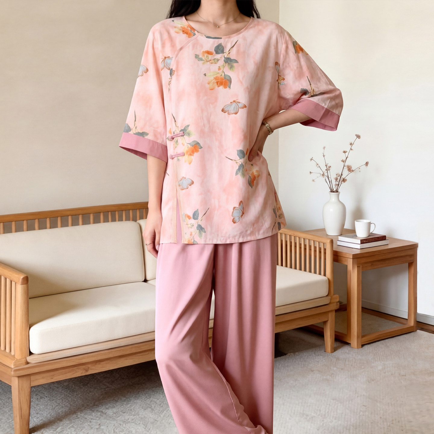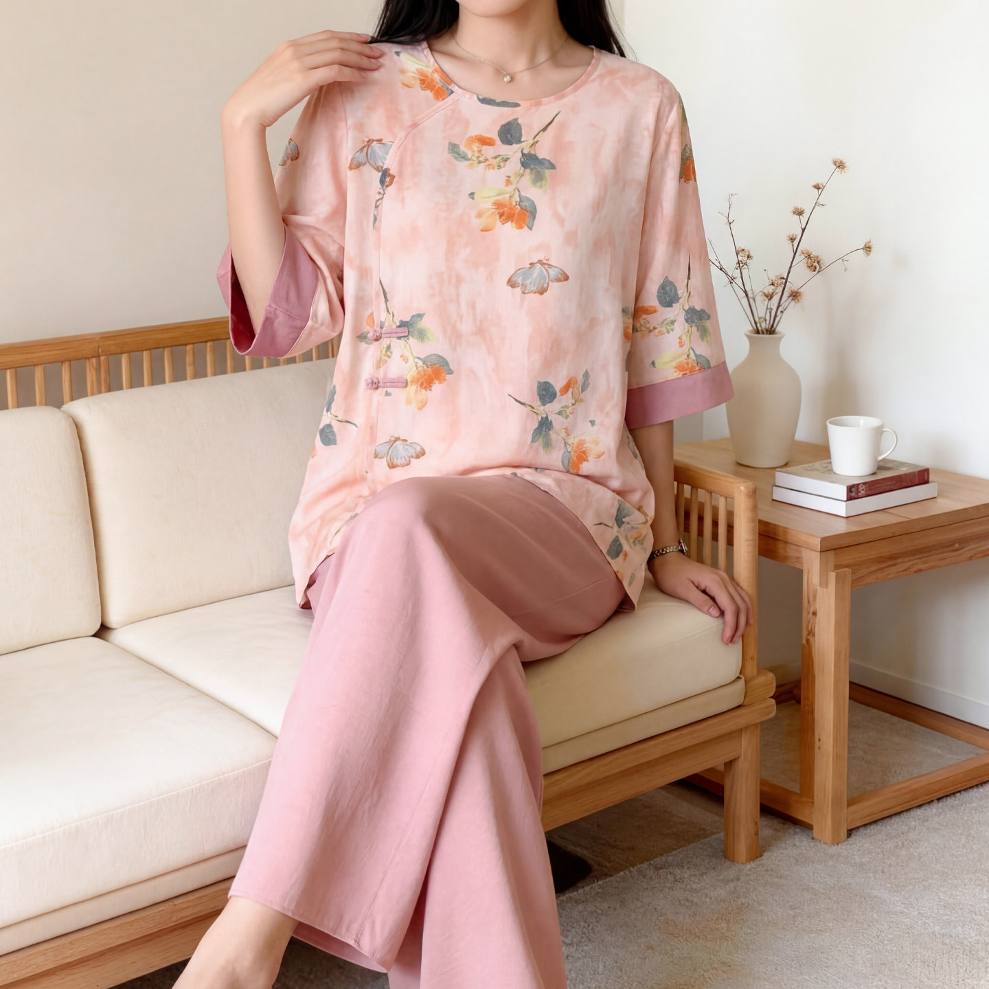 2026新款国风棉绸睡衣套装女款夏季五分袖宽松可外穿人造棉家居服