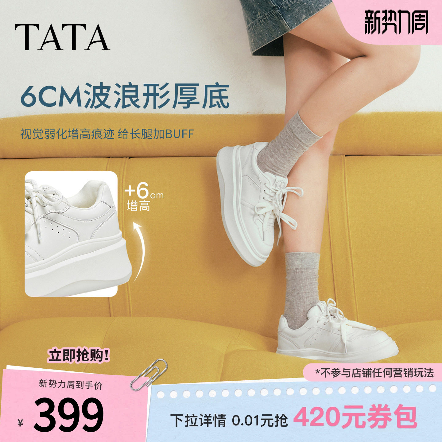 TATA他她女鞋春季商场板鞋子厚底时尚休闲鞋百搭小白鞋GCD12AM6D