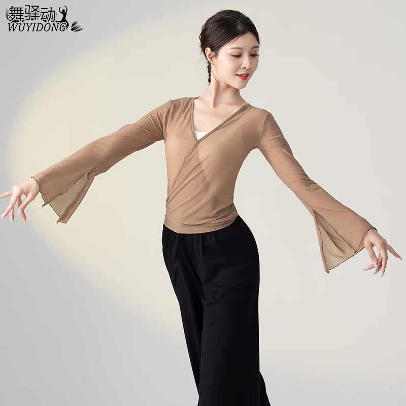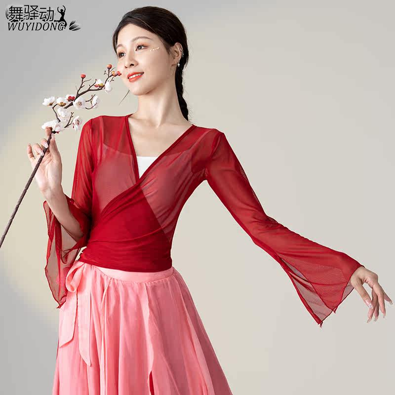 古典舞身韵弹力纱衣女飘逸练功服中国舞蹈服装成人网纱上衣演出服