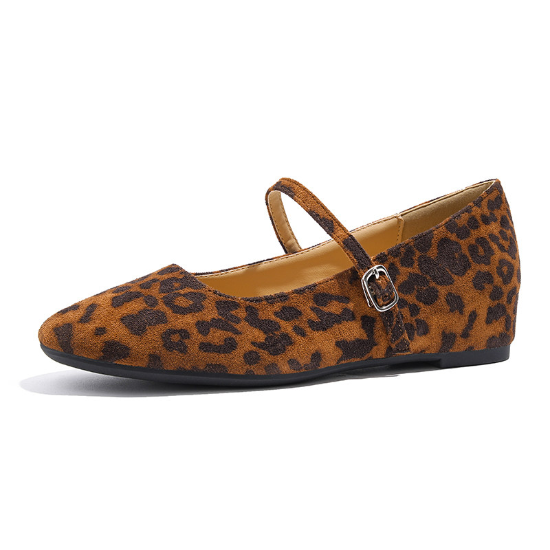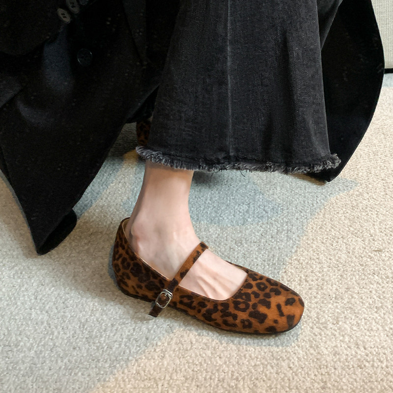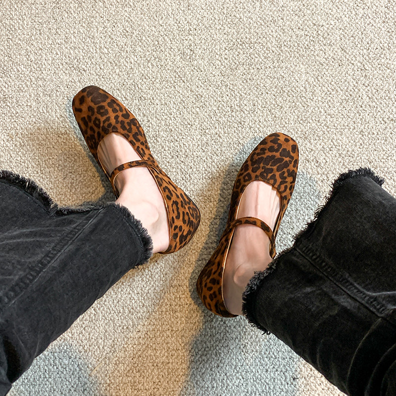 羊皮版~内增高3cm豹纹玛丽珍鞋女2026新款法式气质芭蕾舞平底单鞋
