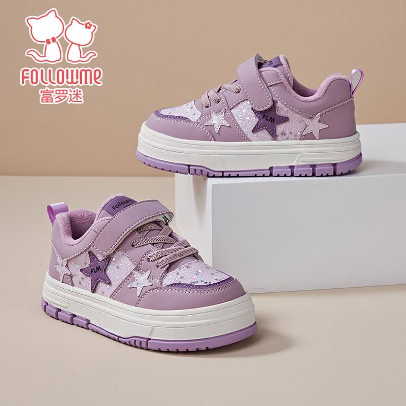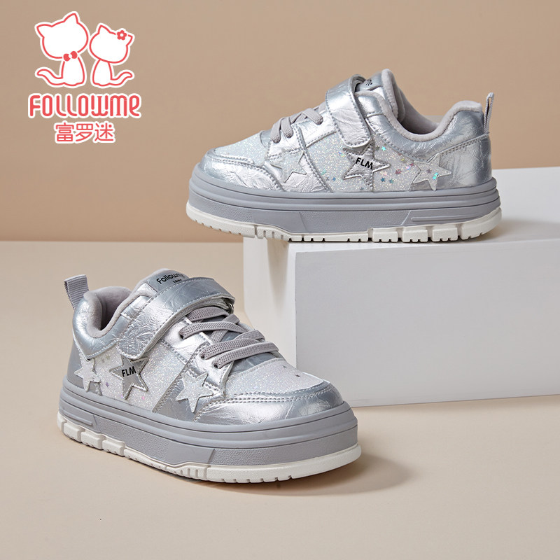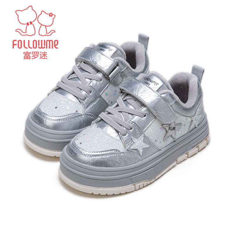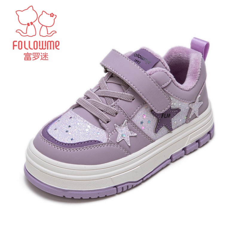 富罗迷儿童板鞋女童鞋子2025冬季新款软底加厚保暖女款运动二棉鞋
