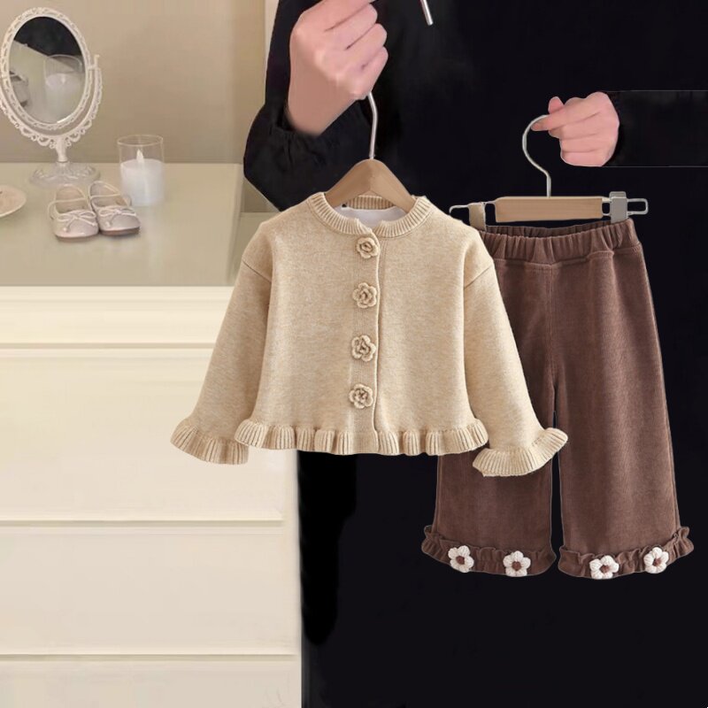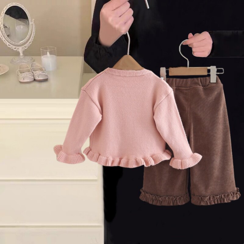 女童秋装套装2025新款女宝宝春秋洋气毛衣开衫三件套时髦韩版潮衣