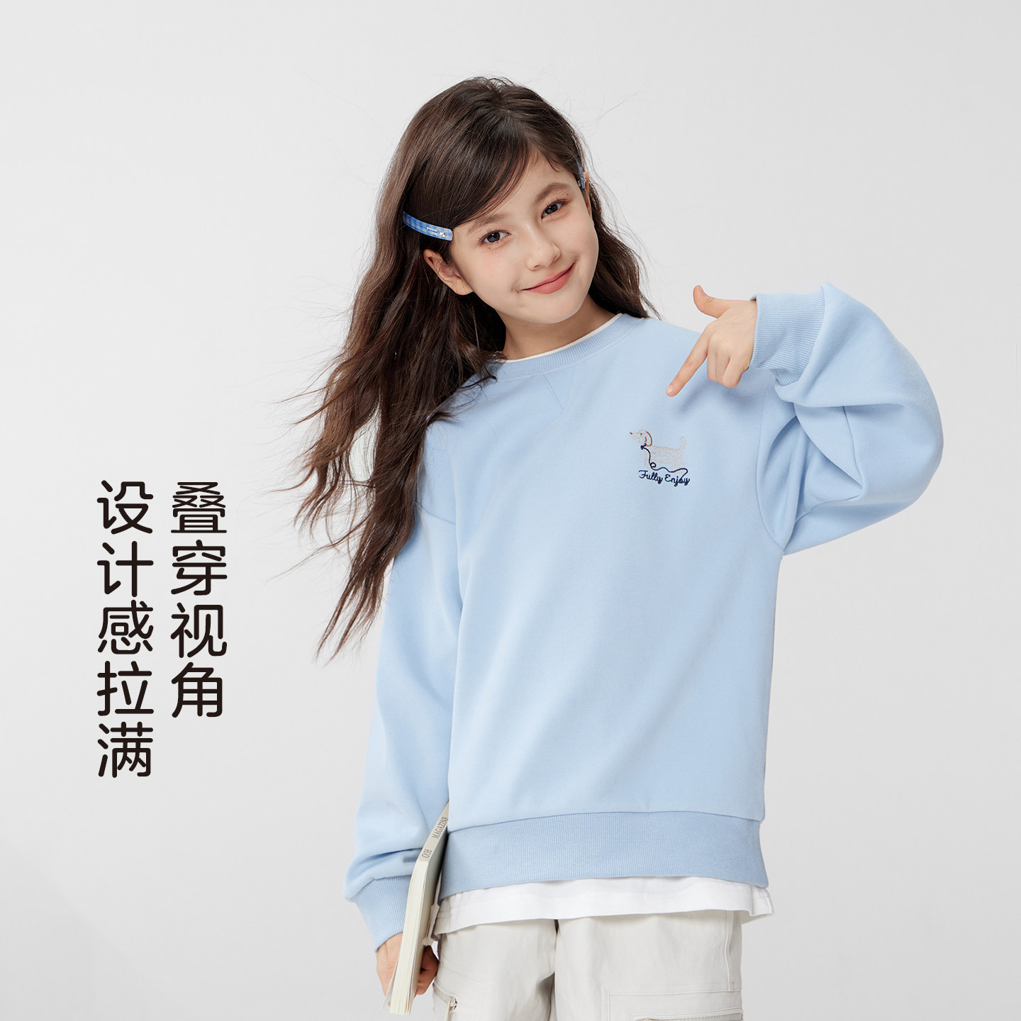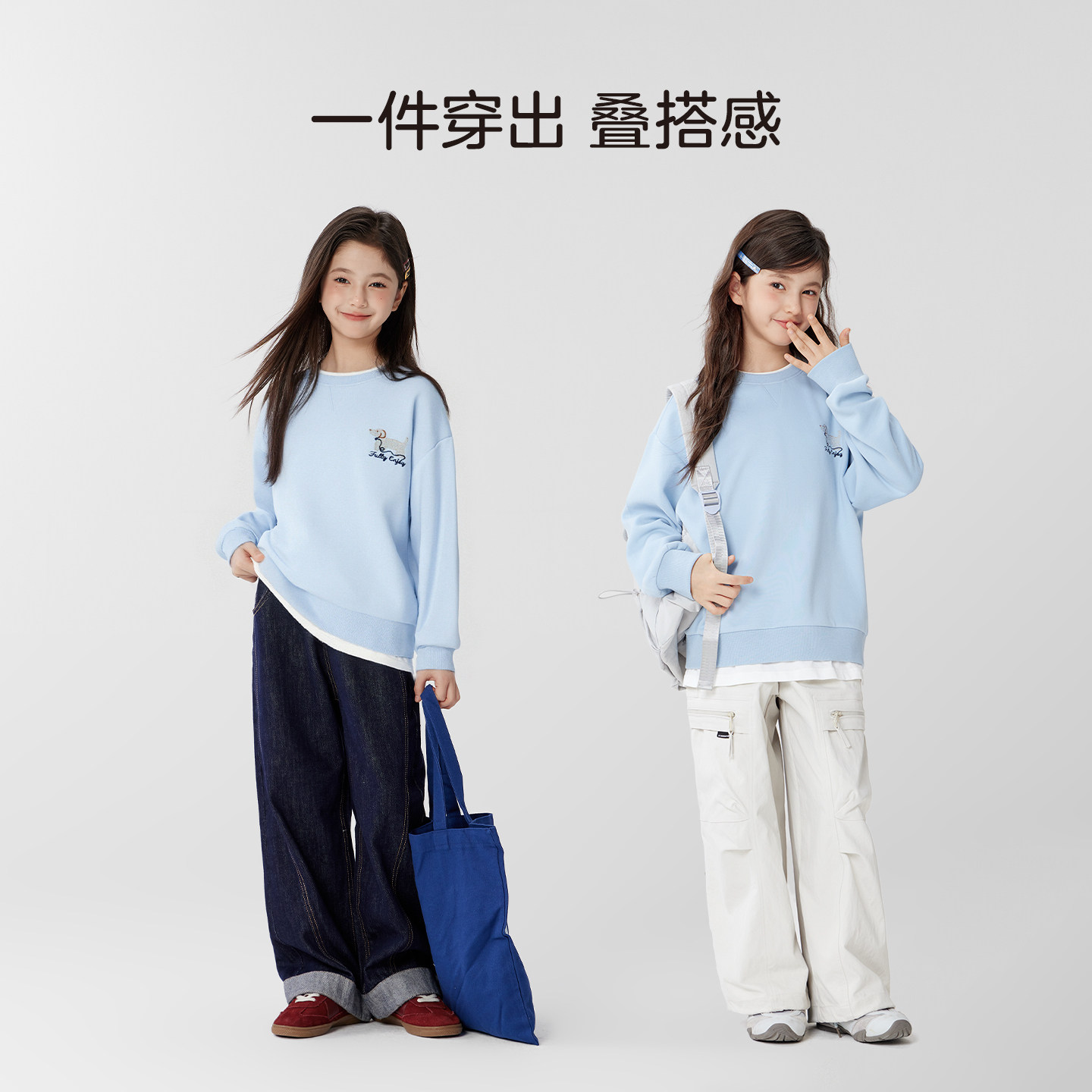 左西童装女童卫衣儿童假两件小狗圆领套头头衫中大童甜美2026春装