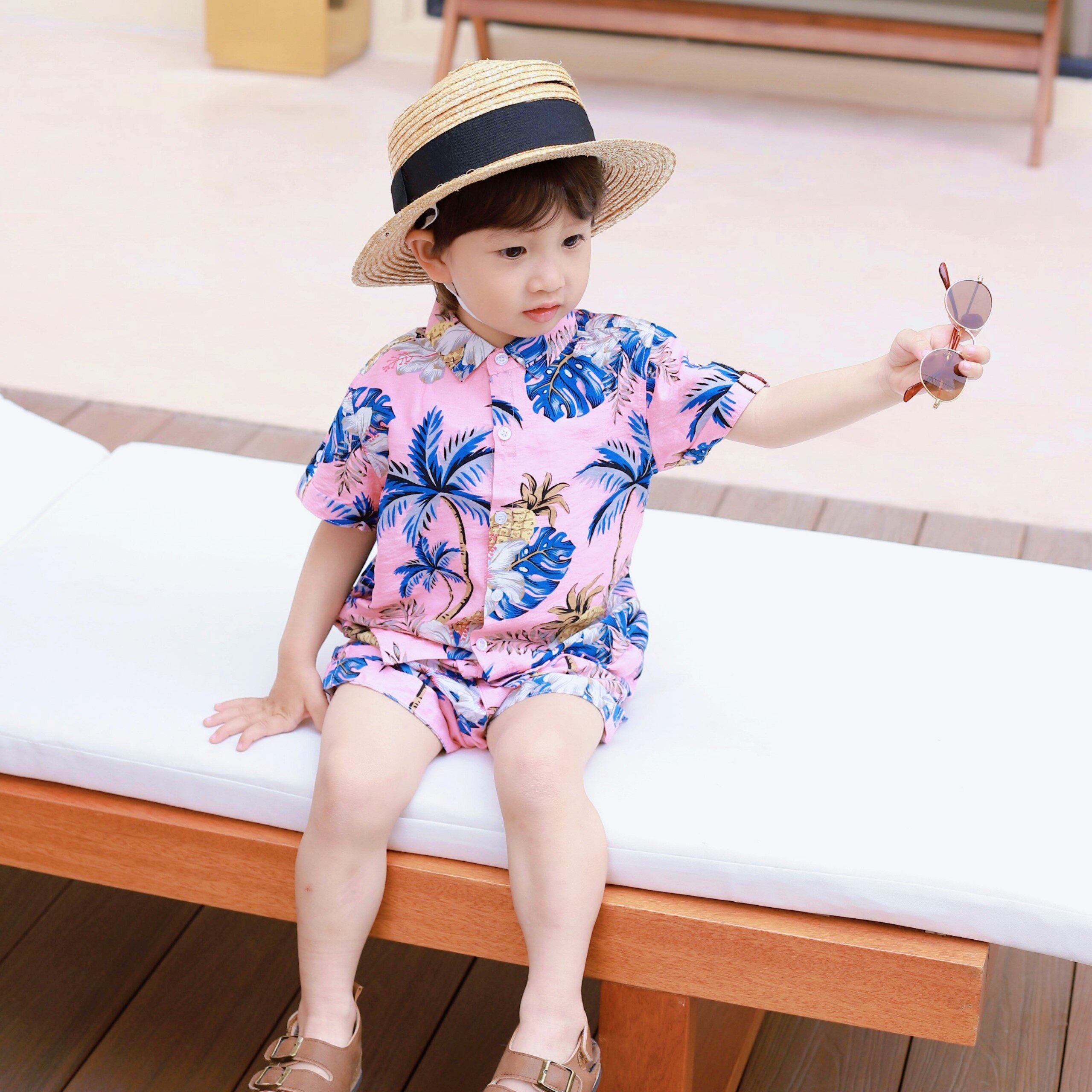 MIMY夏季男童花衬衫套装短袖儿童薄款日系休闲新款夏威夷风格