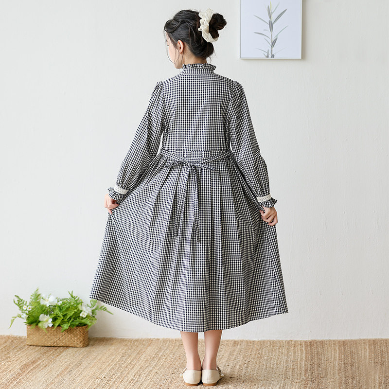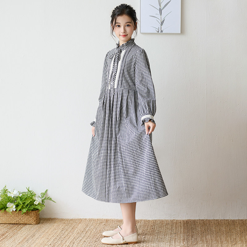 中大女童连衣裙2026新款春秋装儿童洋气格子长袖公主裙子女孩甜美