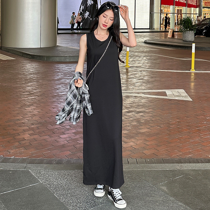 黑色吊带连衣裙垂感无袖背心裙女春夏宽松内搭裙子直筒高级感长裙