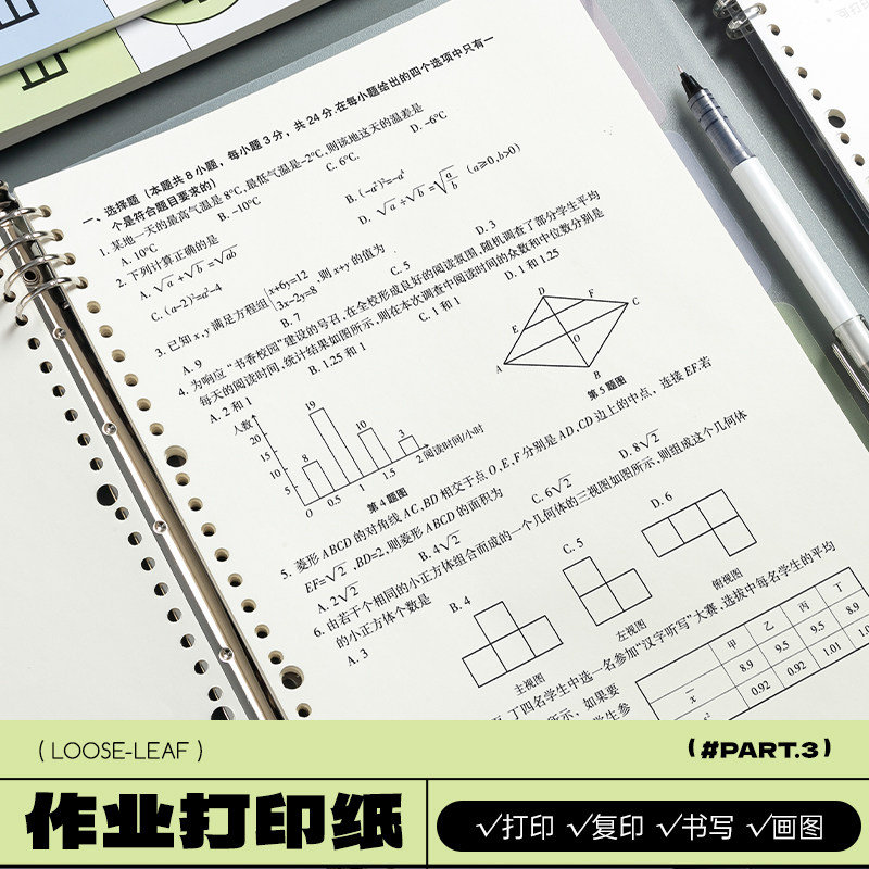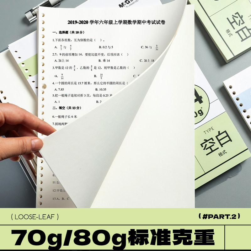 晨光文具道林作业打印纸a4活页可拆卸学生专用护眼纸道林原浆纸活页替芯纸护眼试卷打印纸A4打印纸试卷复印纸