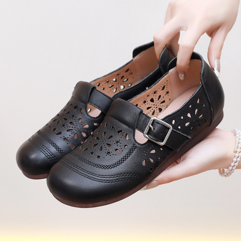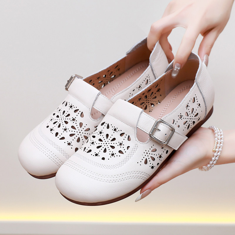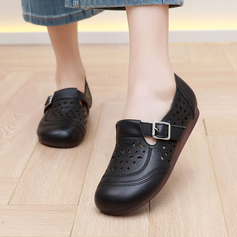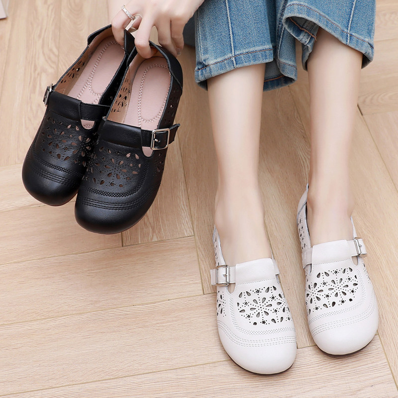 平底真皮牛筋软底妈妈鞋凉鞋镂空舒适不累脚中老年轻便单鞋夏季