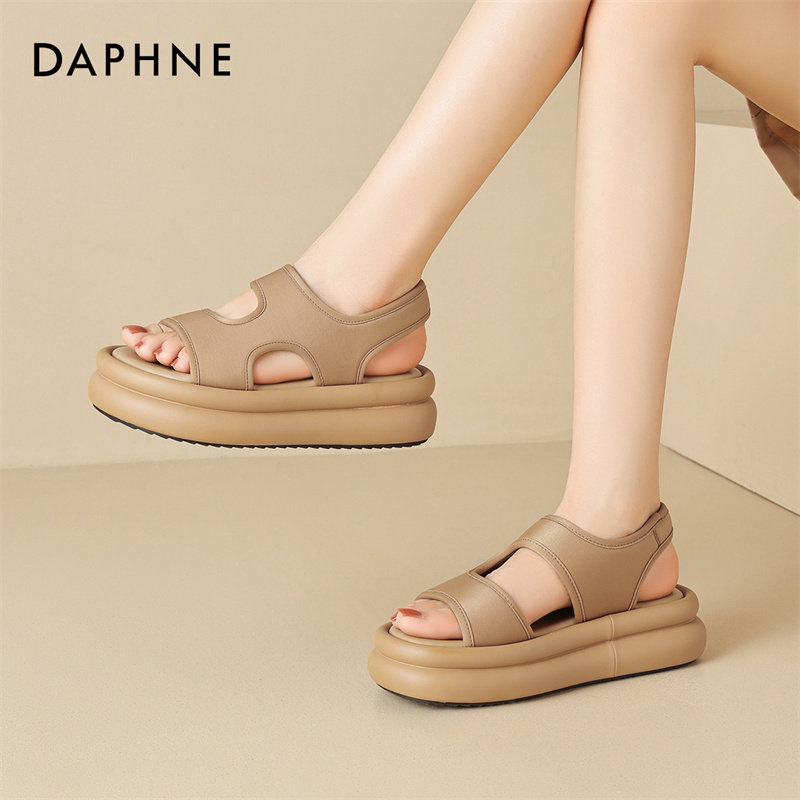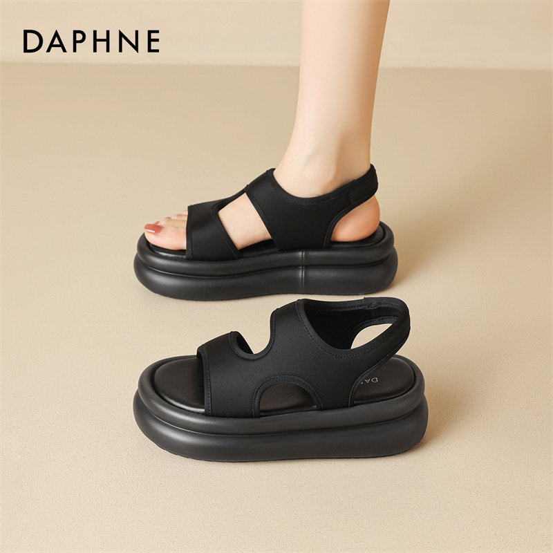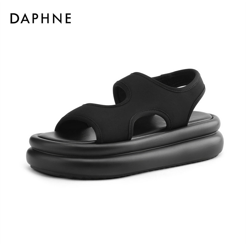 达芙妮黑厚底休闲凉鞋女2026新款夏季轻便软底舒适百搭软底不累脚