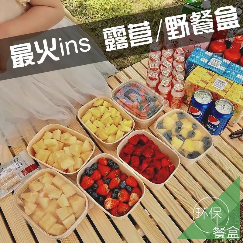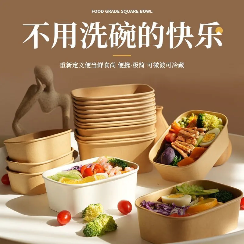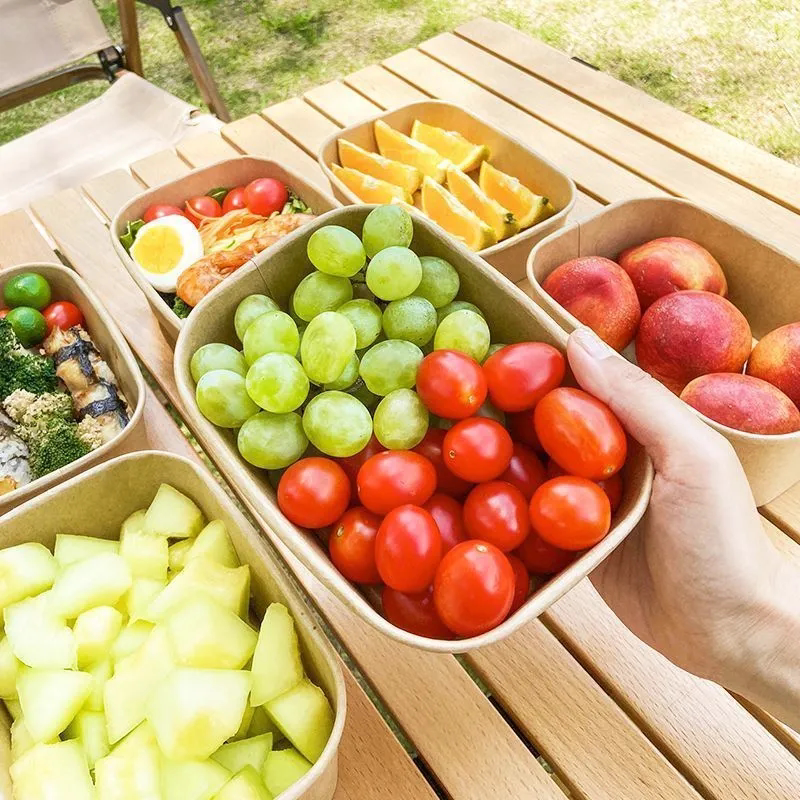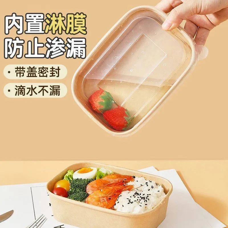 加厚一次性餐盒牛皮纸长方形打包盒免洗食品级轻食野餐便当水果盒