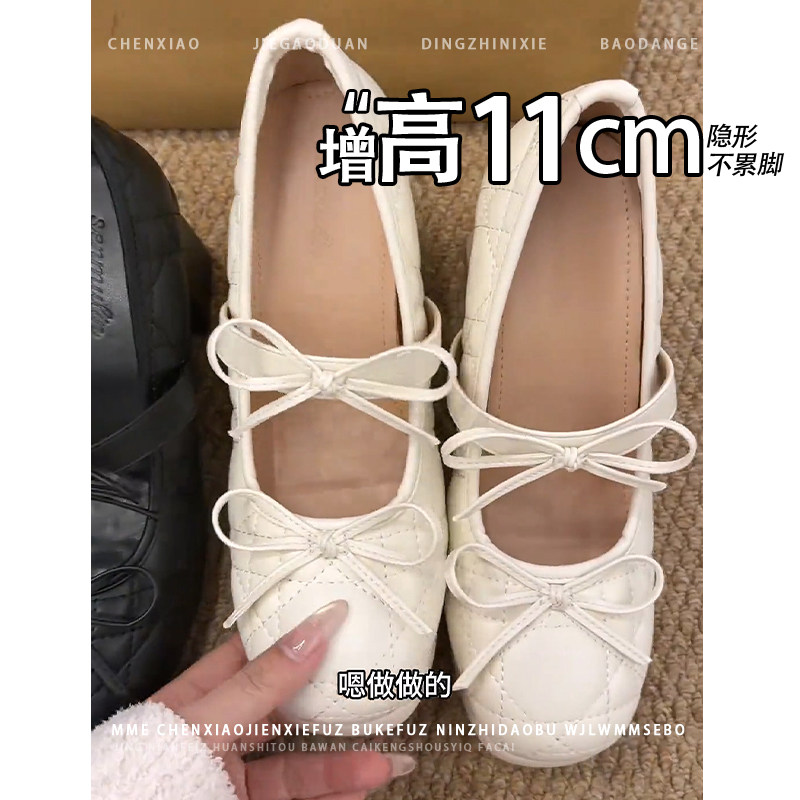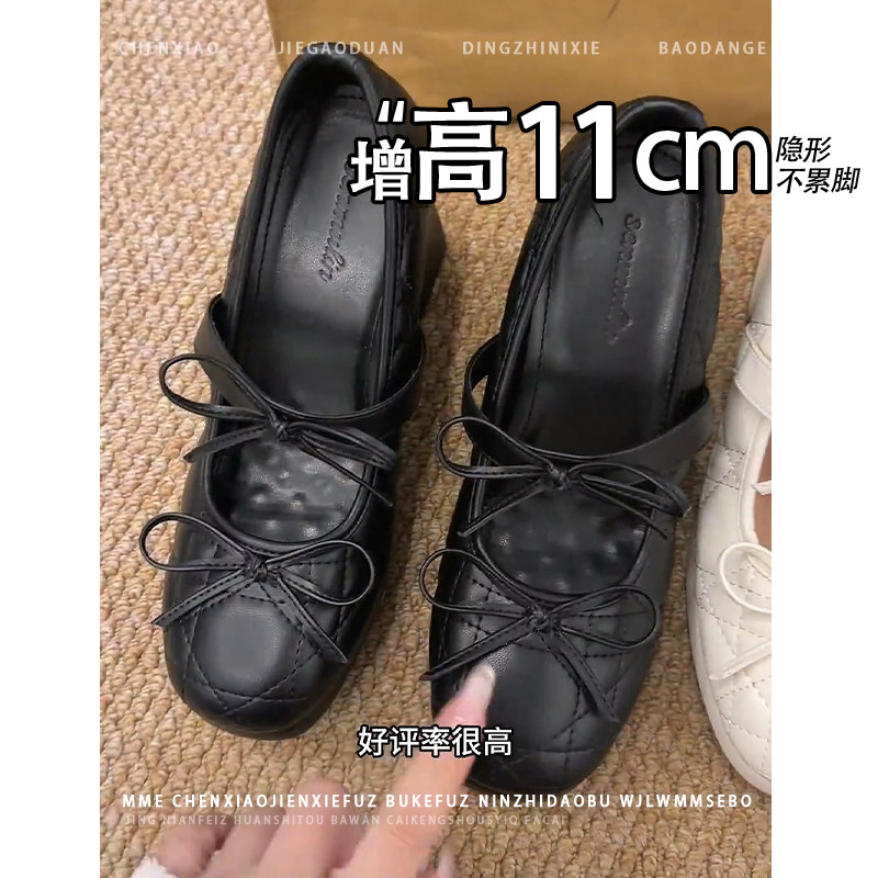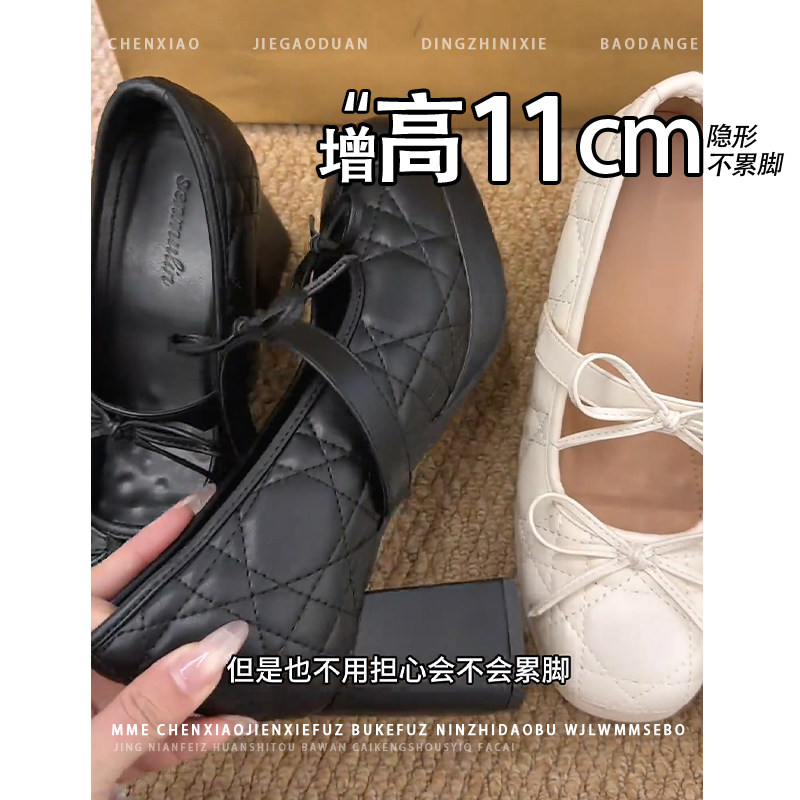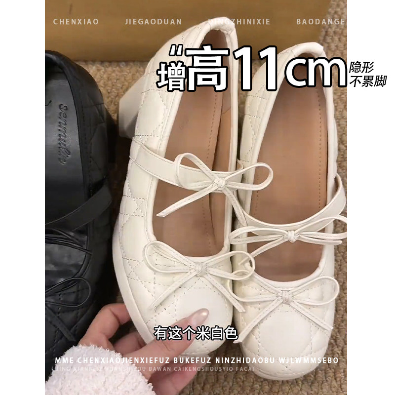 内增高11CM!小个子圆头粗跟玛丽珍鞋2026春新款套脚浅口单鞋女