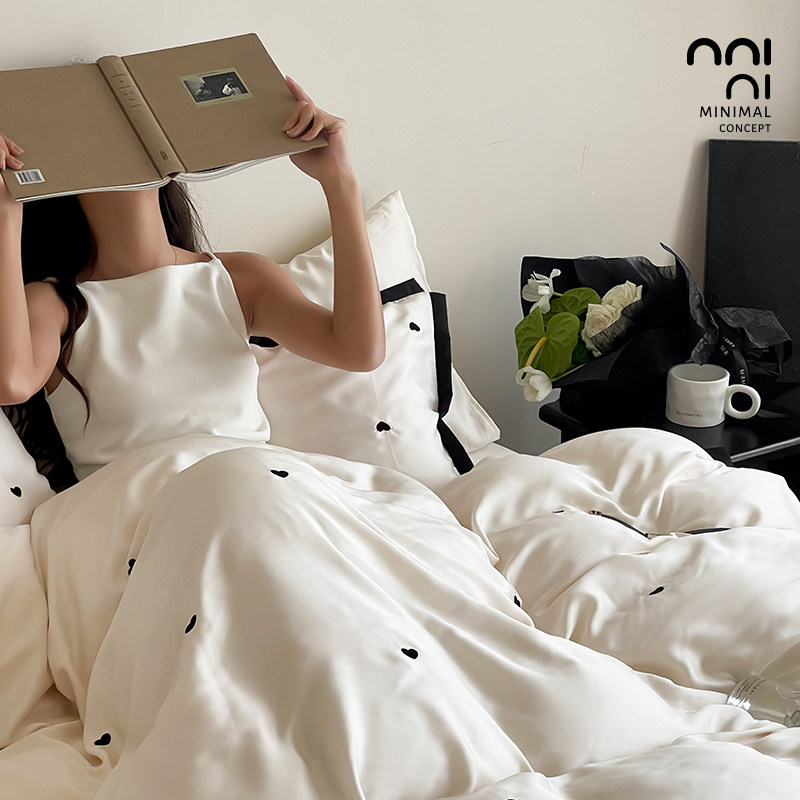 Minimal黑色桃心|60s天丝简约感四件套轻奢高级感冰丝床上用品4