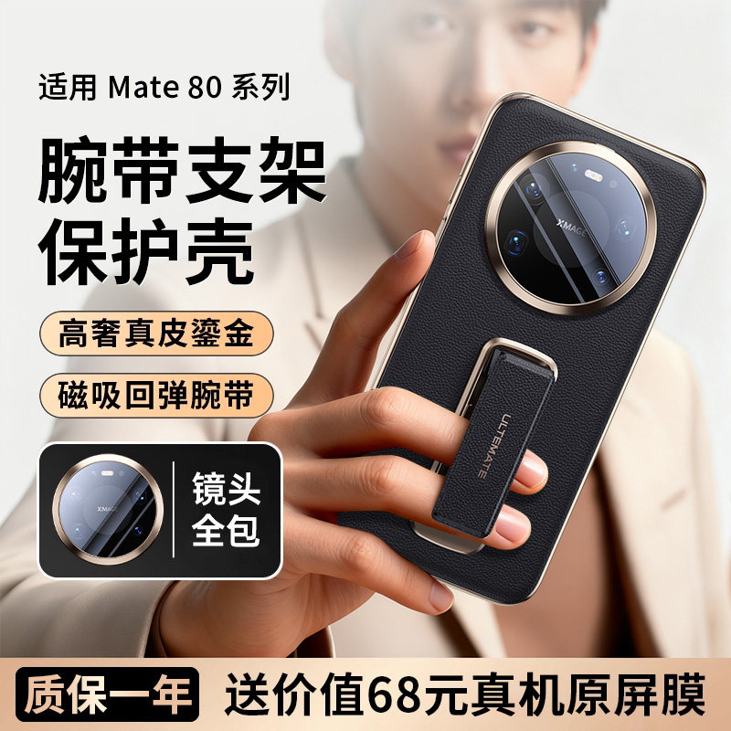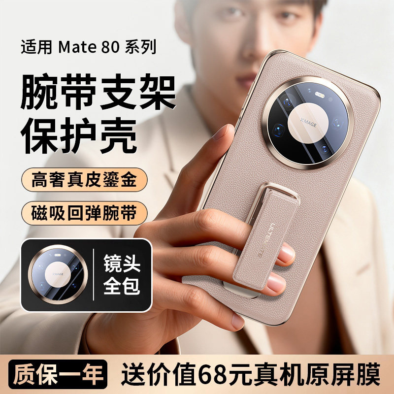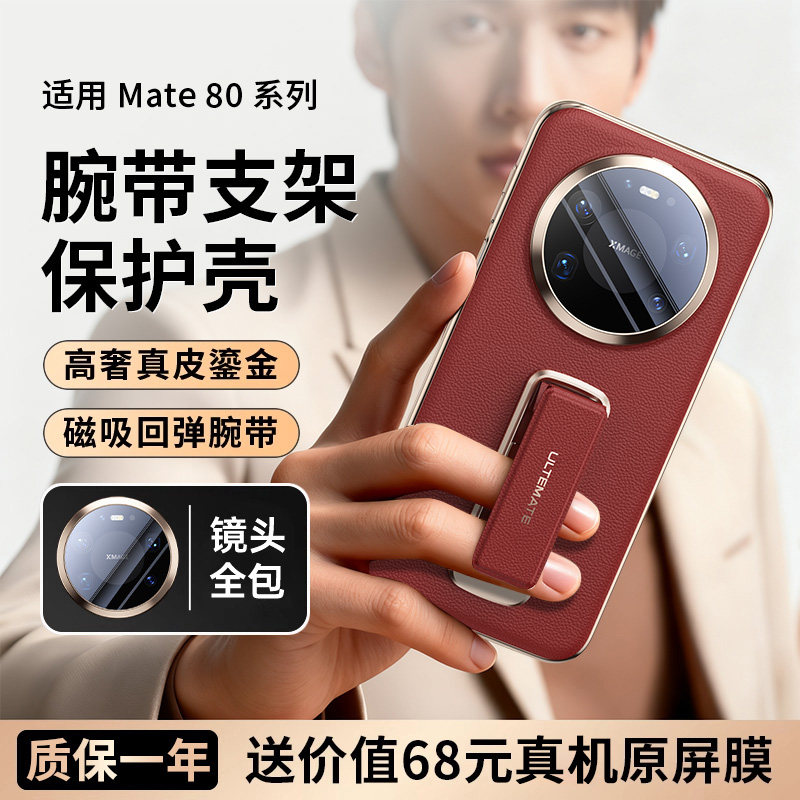 适配华为mate80promax手机壳新款腕带支架保护壳80pro真皮高级感mate70pro+镜头全包超薄防摔mate70air男后壳