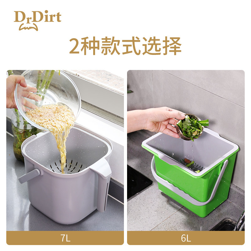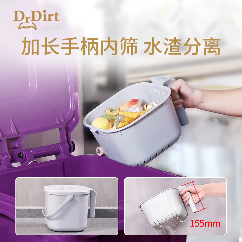 Drdirt厨余垃圾桶家用厨房桌面干湿分离厨余湿垃圾收纳茶水桶双层