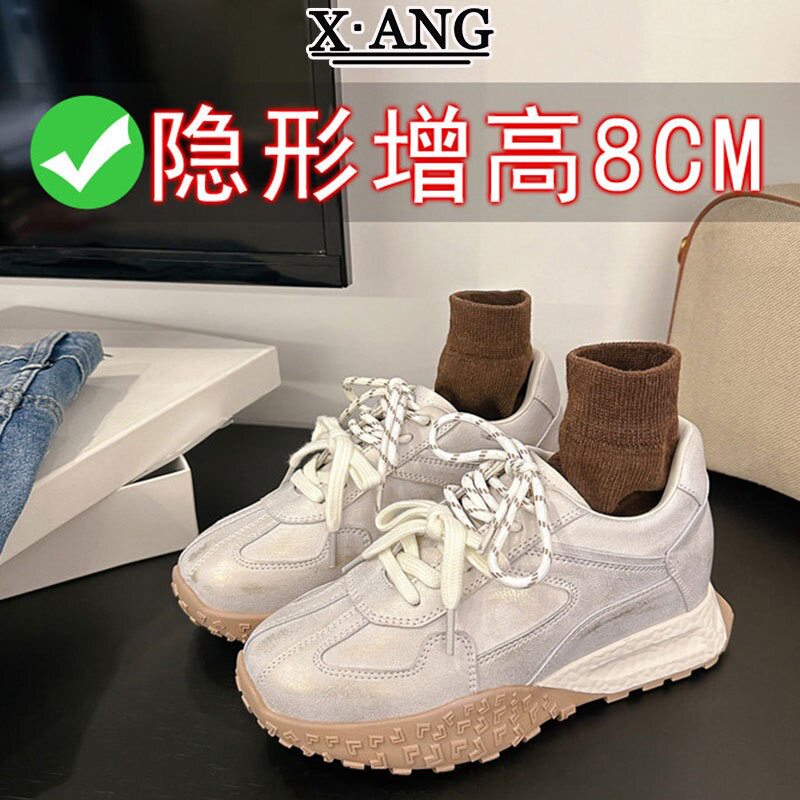 真皮8cm内增高小个子女鞋德训鞋厚底阿甘鞋显脚小休闲运动老爹鞋