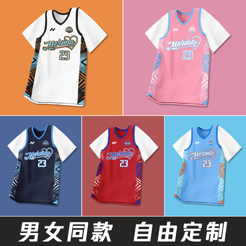 篮球服女生假两件2026新款套装定制美式初中高中学生短袖球衣速干