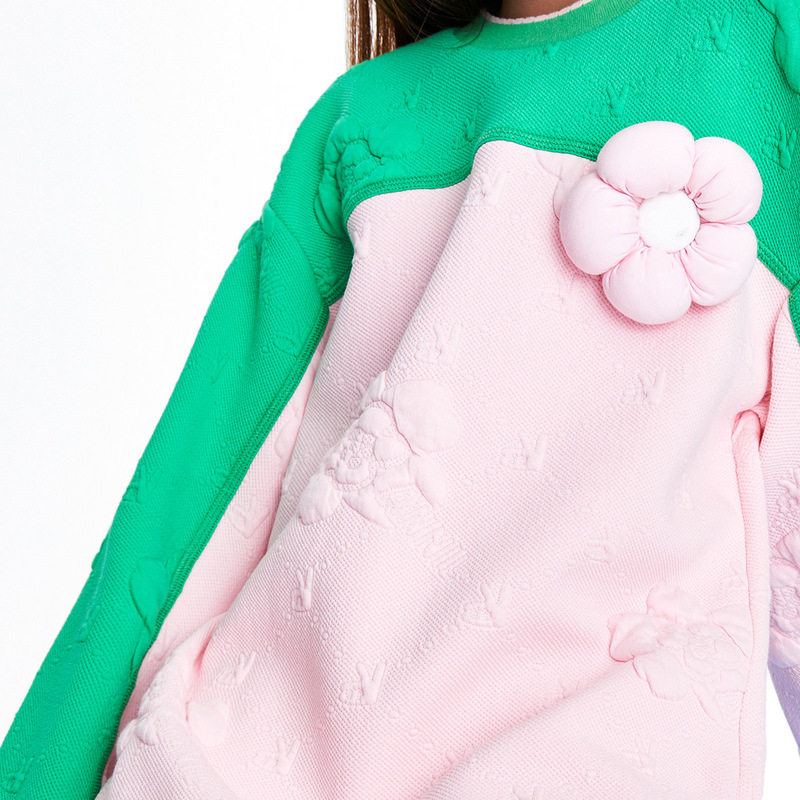 311线报网描述:夹丝布面料绵柔保暖,撞色的拼撞茧型的版型