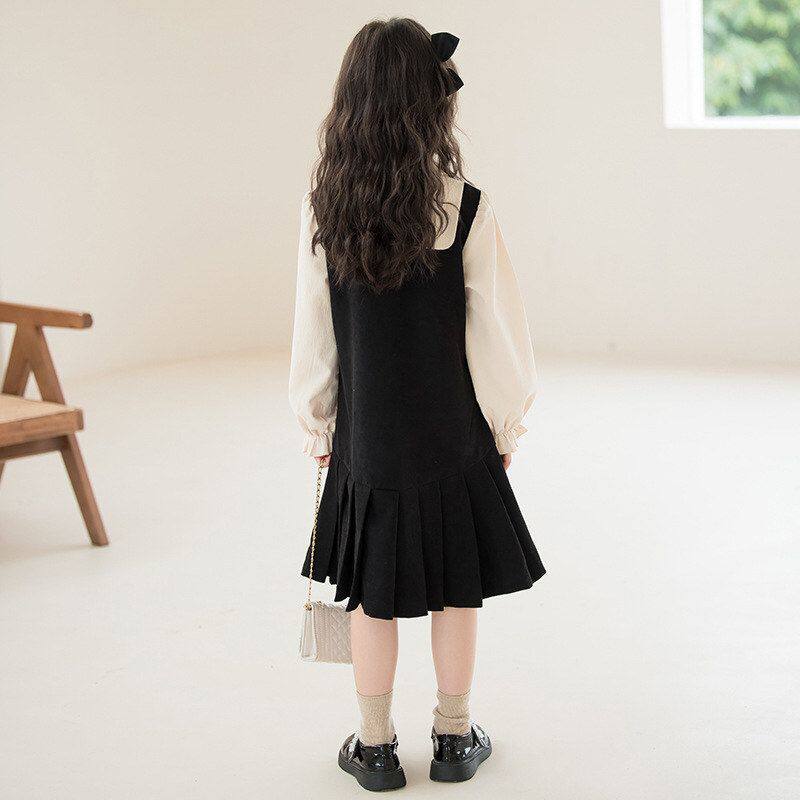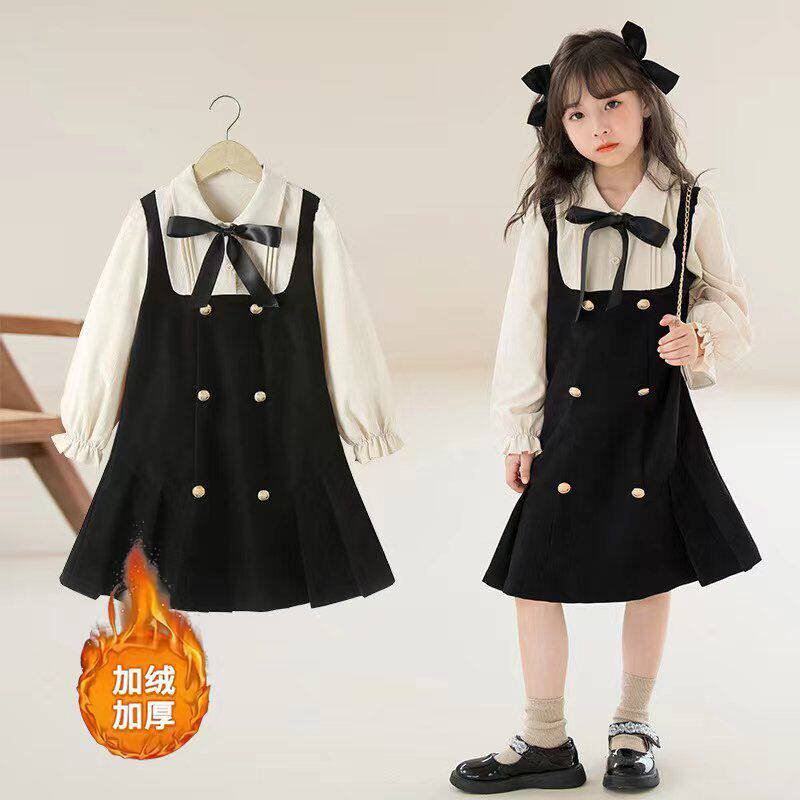 女童连衣裙春季2026新款洋气时尚学院风公主裙中大童假两件套代发