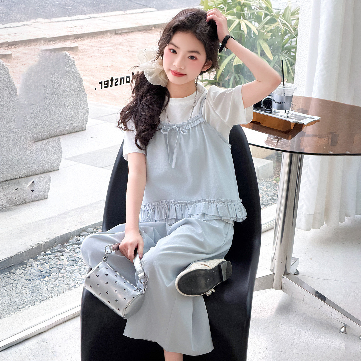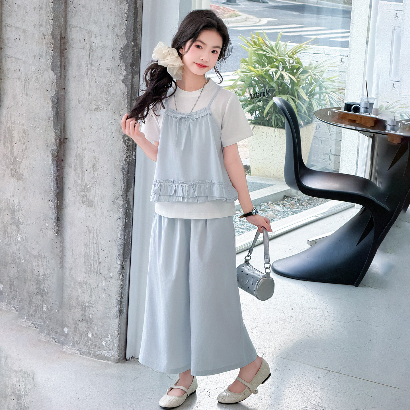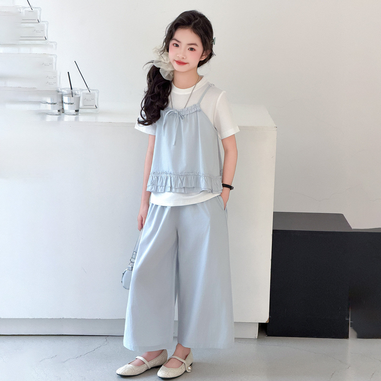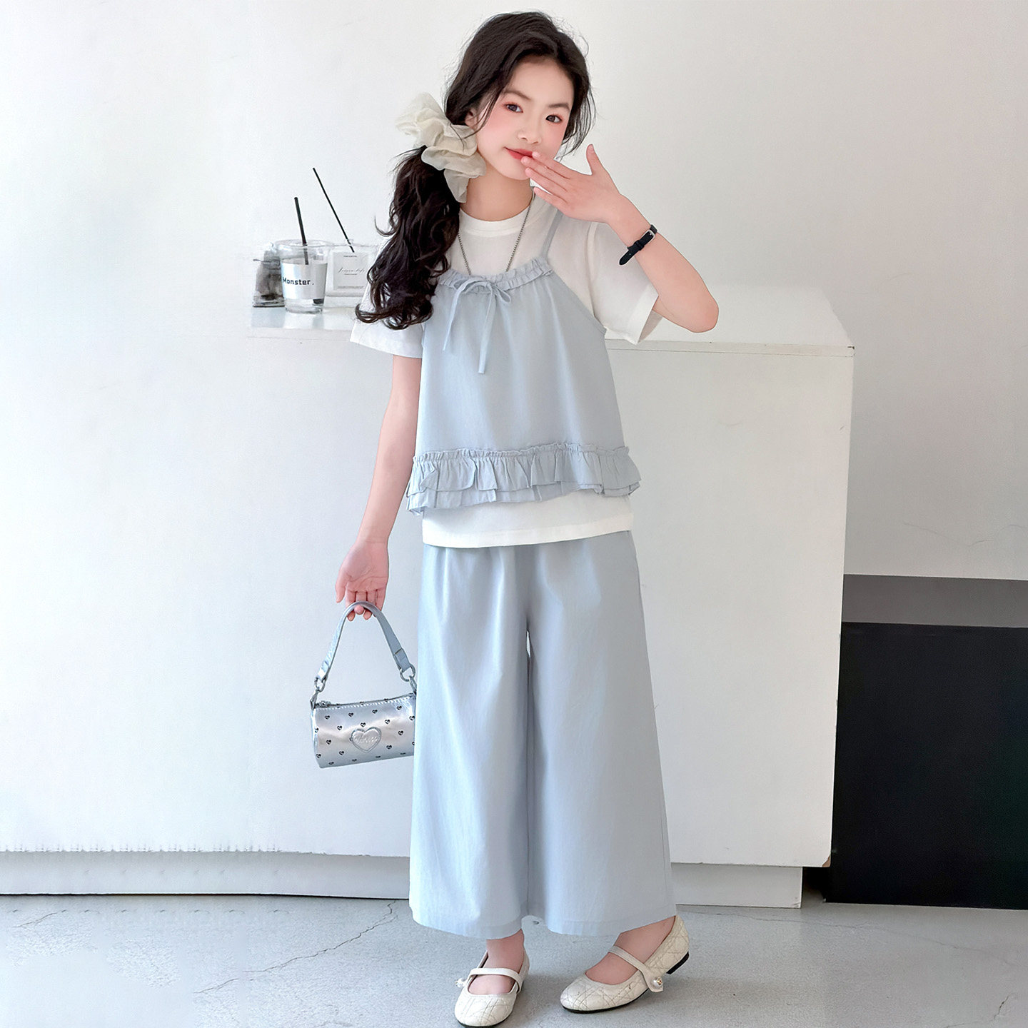 女童套装2026夏季新款儿童韩版背心T恤中大童短袖上衣裤子三件套