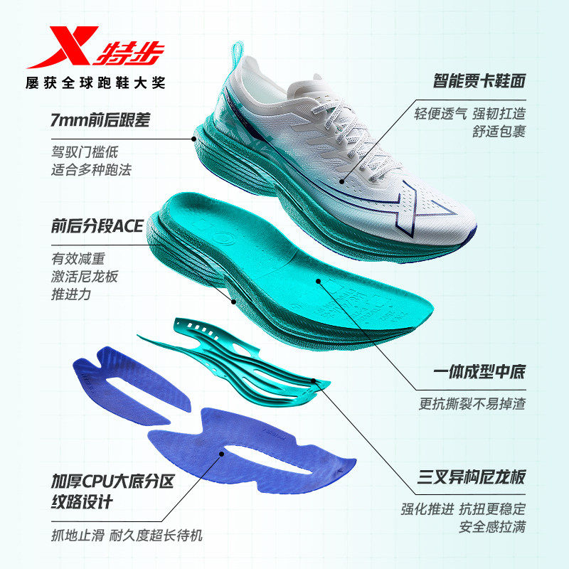 特步一体成型三代丨跑鞋男鞋夏减震竞训运动鞋女鞋网面舒适跑步鞋