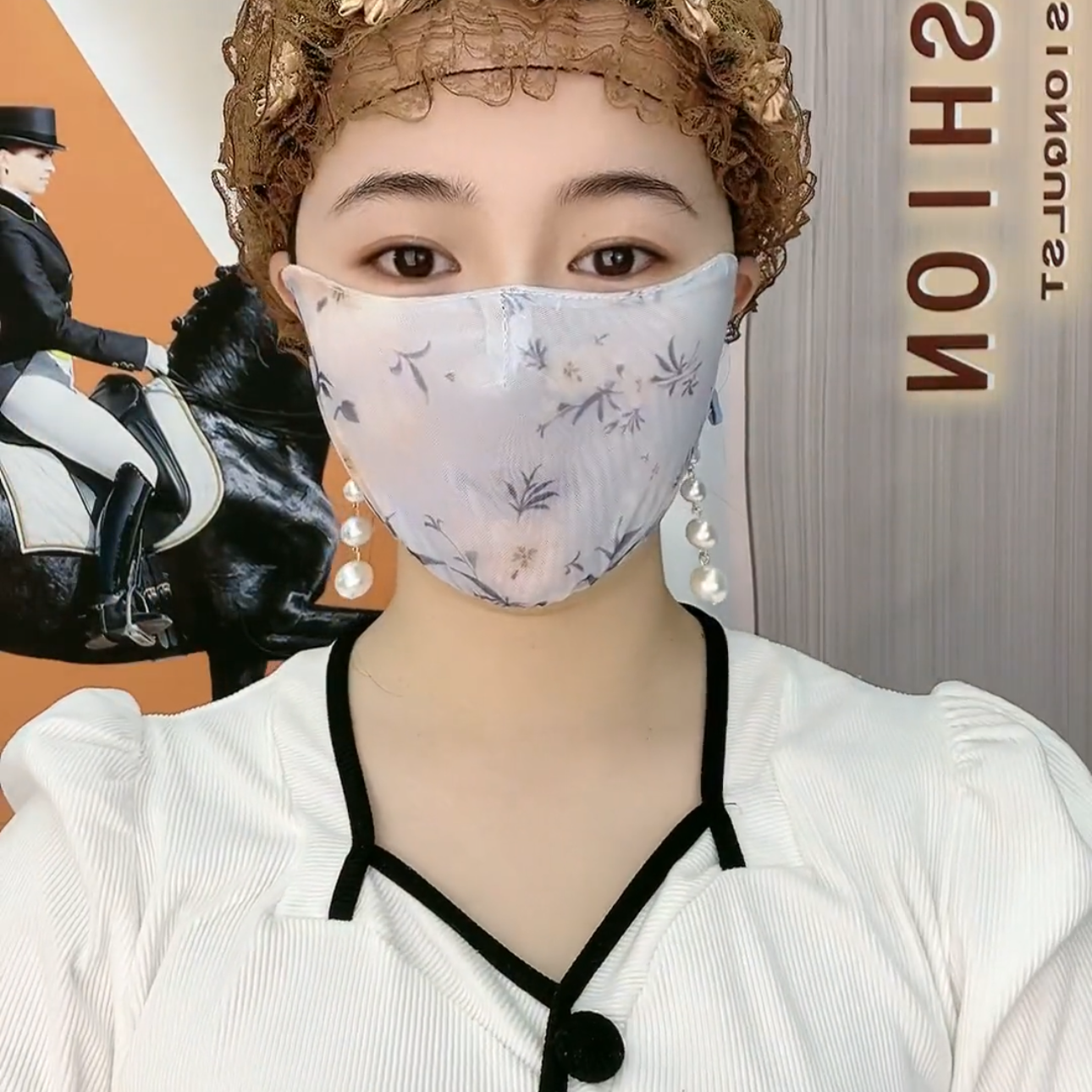夏季加大冰丝防晒防尘口罩女薄护眼角网纱防紫外线全脸透气可水洗