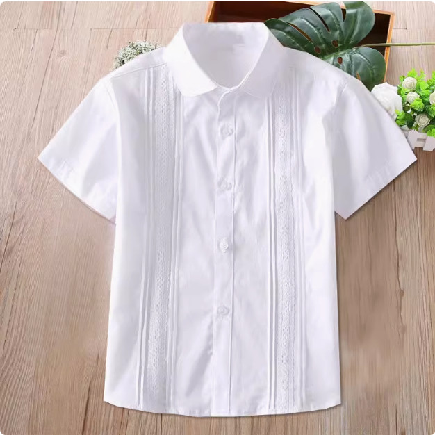 儿童白色短袖衬衫男童礼服夏季薄款黑蓝色衬衣小学生校服演出园服