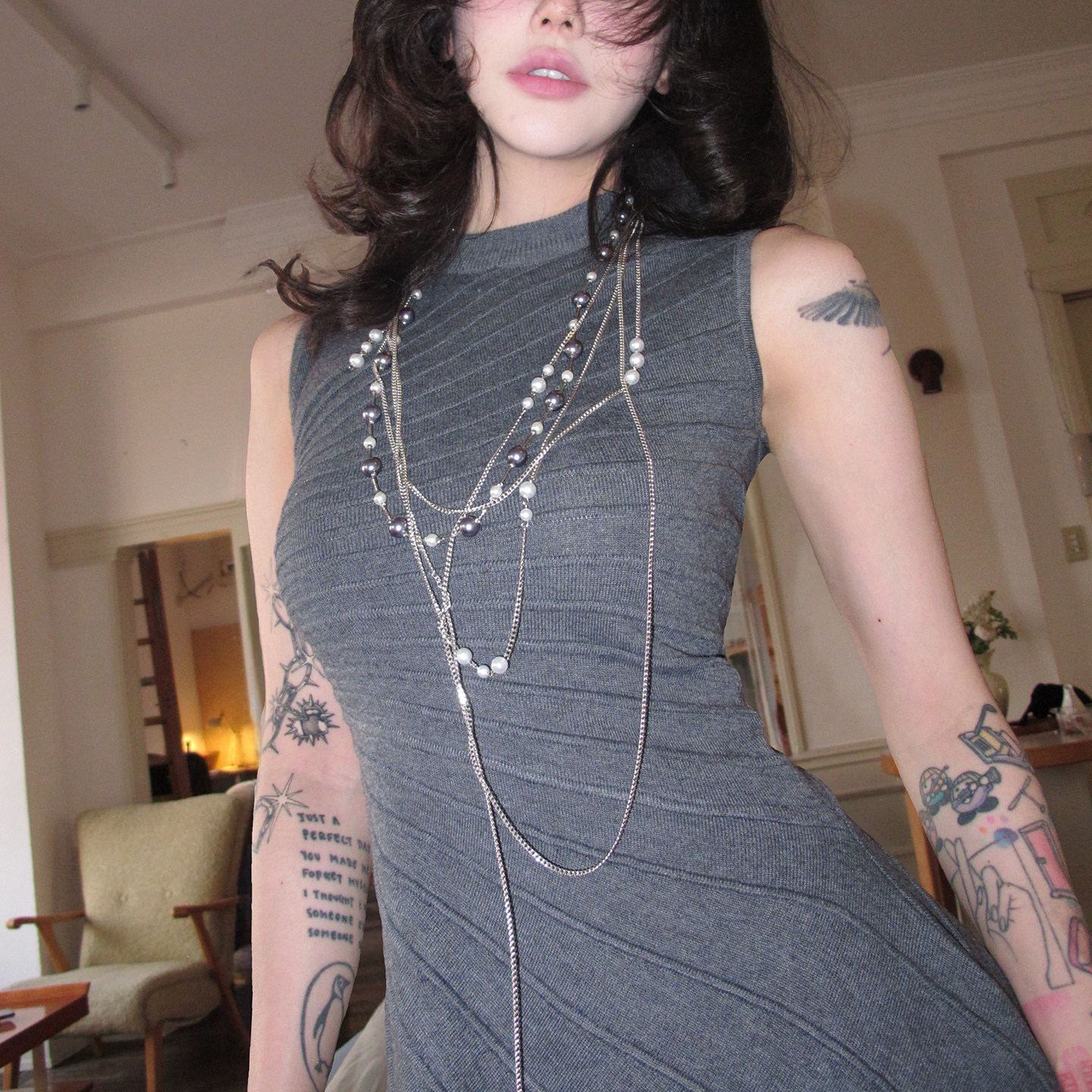 fortylions 圆领无袖连衣裙长款收腰大摆裙A字修身针织长裙女裙子