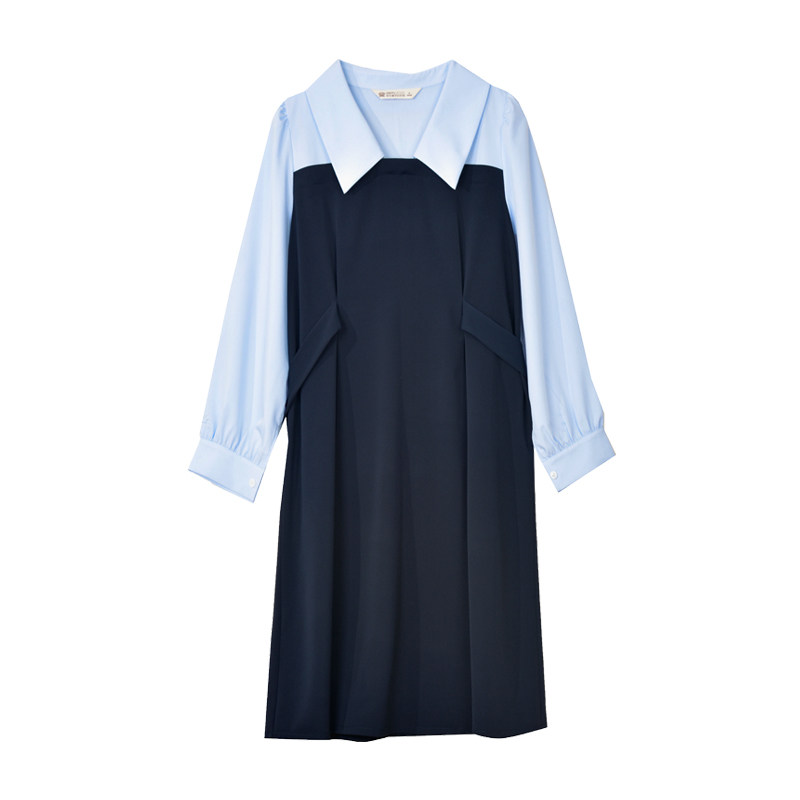 311线报网描述:孕妇通勤风翻领仿两件连衣裙