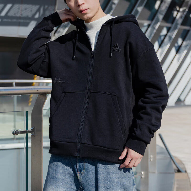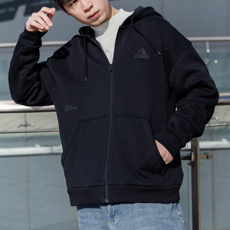 阿迪达斯男士外套秋季运动服宽松连帽夹克开衫卫衣休闲上衣IT3963