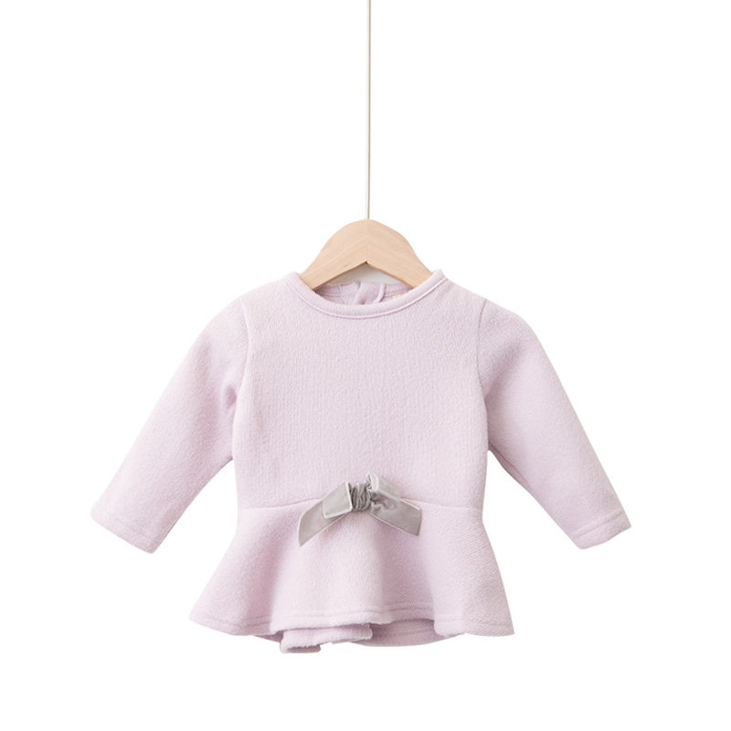 女童裙子抓绒2026秋冬新款宝宝两件套蝴蝶结上衣配短裙洋气套装