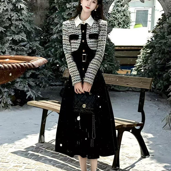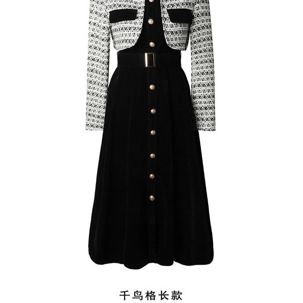 2026年新款法式小香风长袖连衣裙大码胖mm收腰显瘦气质假两件长裙