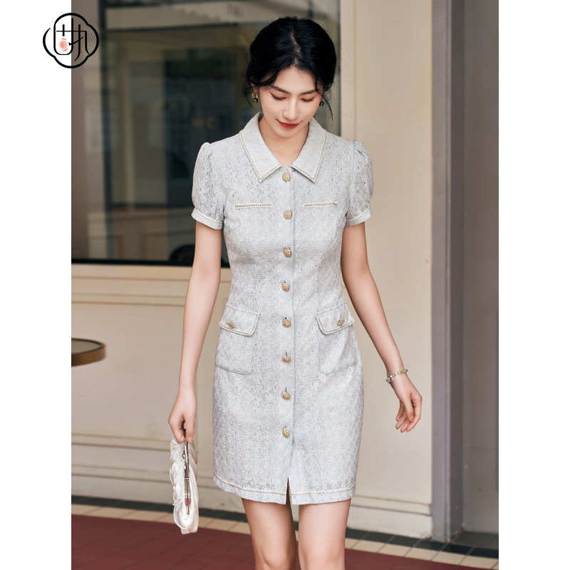 311线报网描述:法式复古小香风气质 蕾丝翻领短款连衣裙