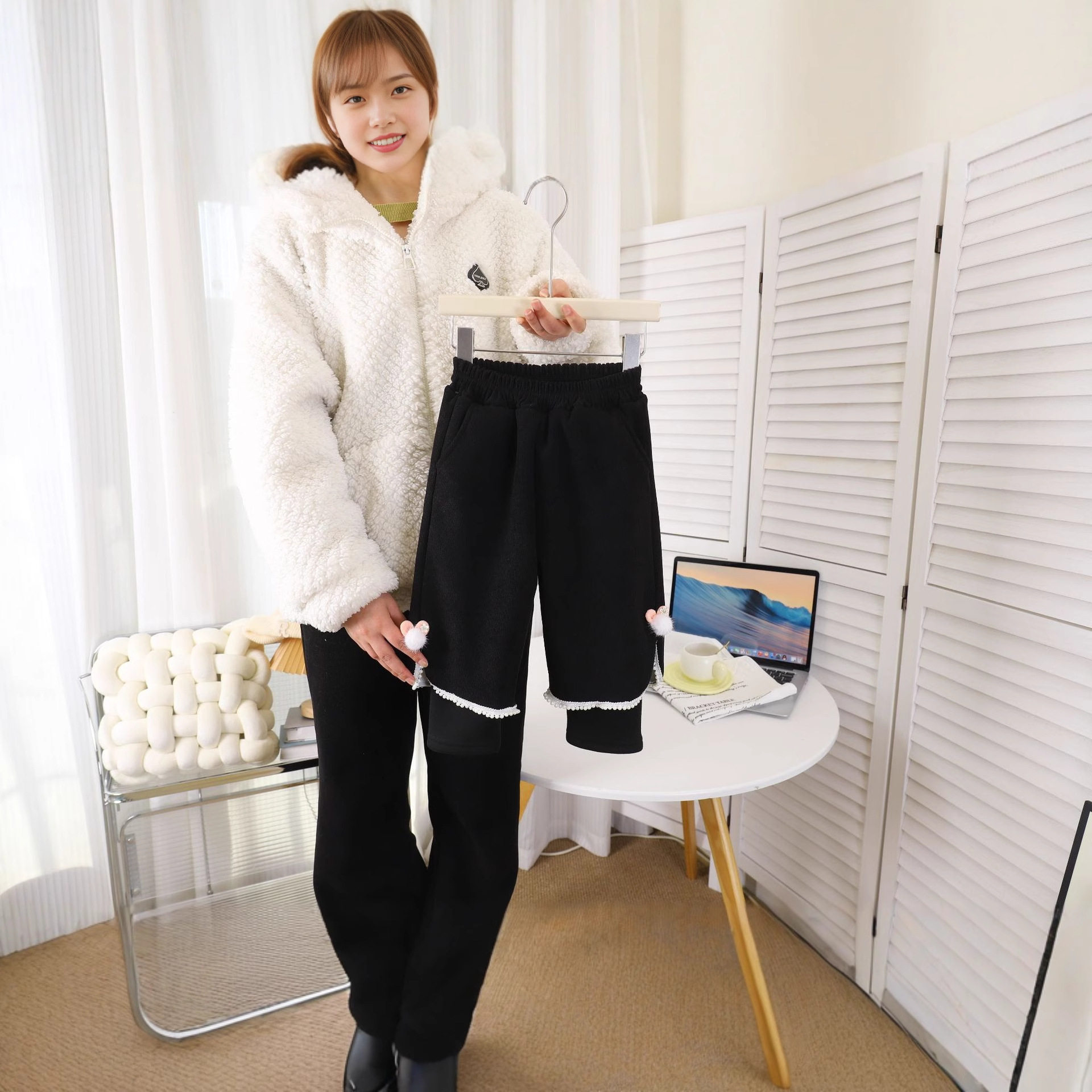 女童加绒裤子秋冬款2025新款儿童洋气冬季一体薄绒卫裤宝宝阔腿裤