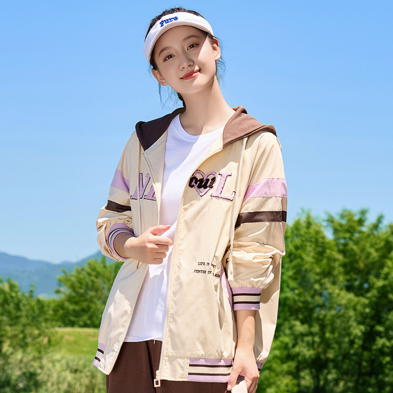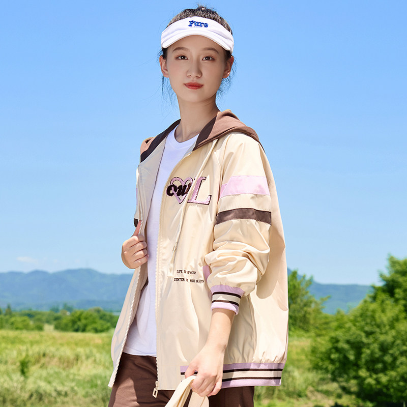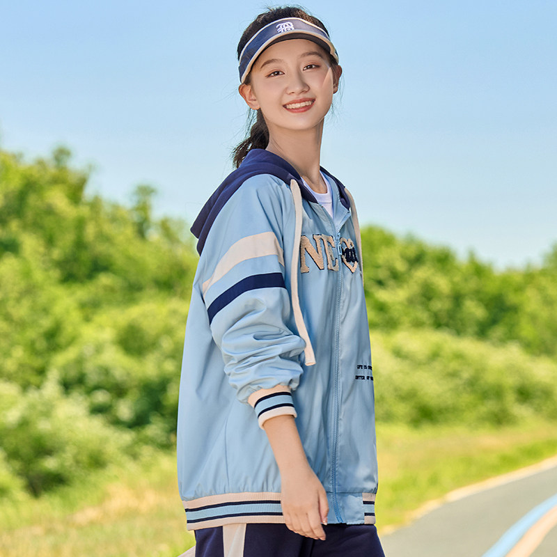 初中生春装外套少女春秋新款夹克大童假两件高中女孩开衫上衣连帽