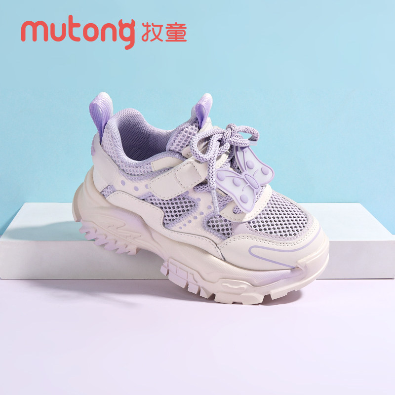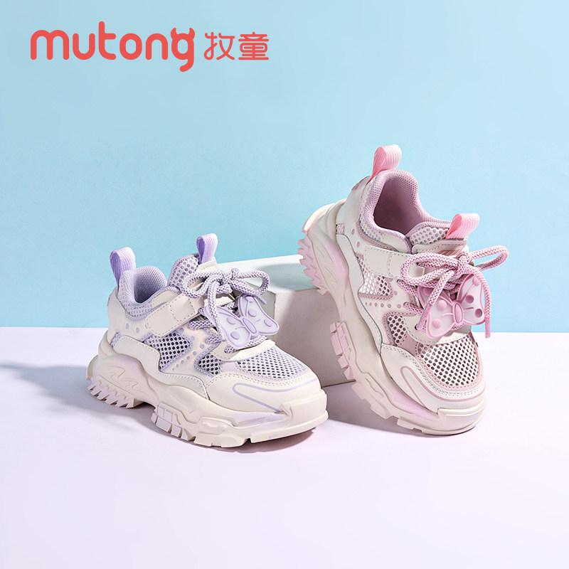 牧童女童运动鞋2025夏季新款儿童鞋子透气网面女孩老爹鞋单网休闲