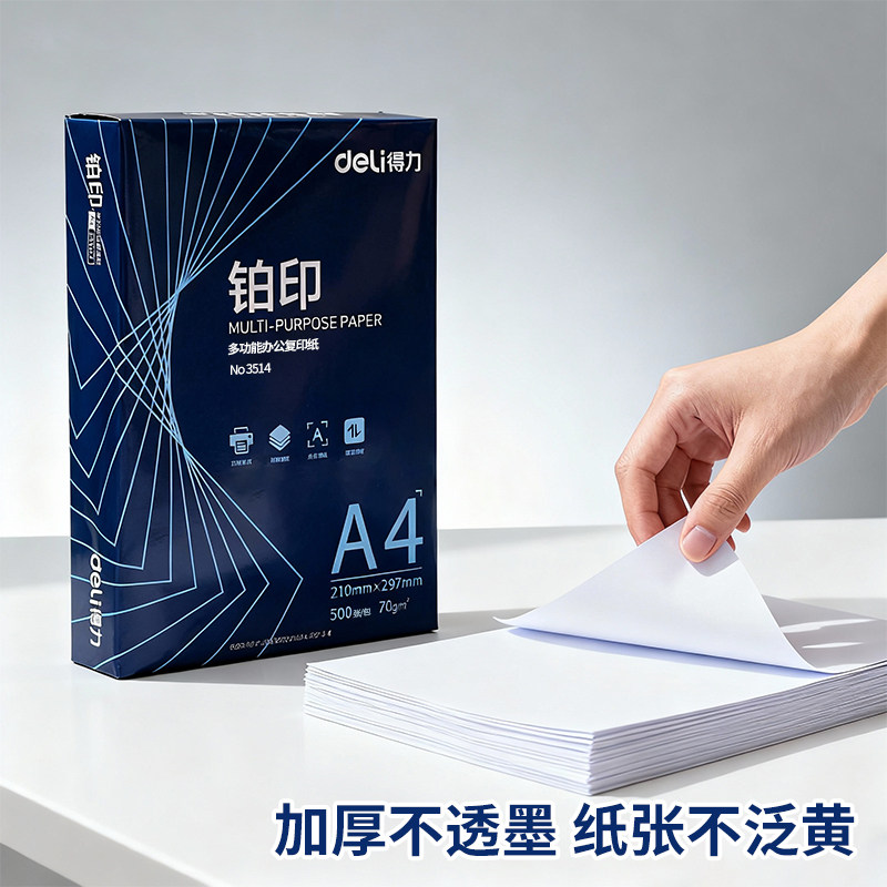 得力A4打印纸复印纸整箱70g80g铂印A3纸白纸单包500张草稿纸办公用纸
