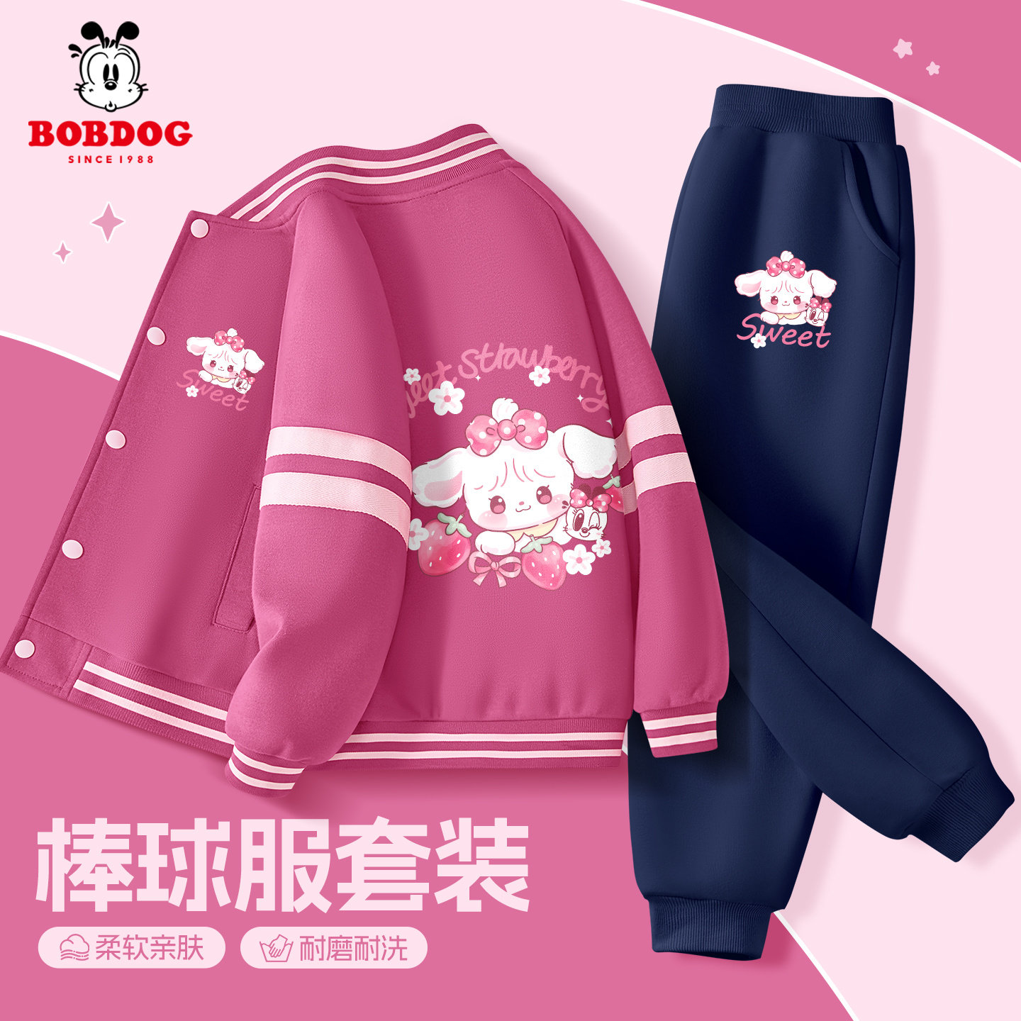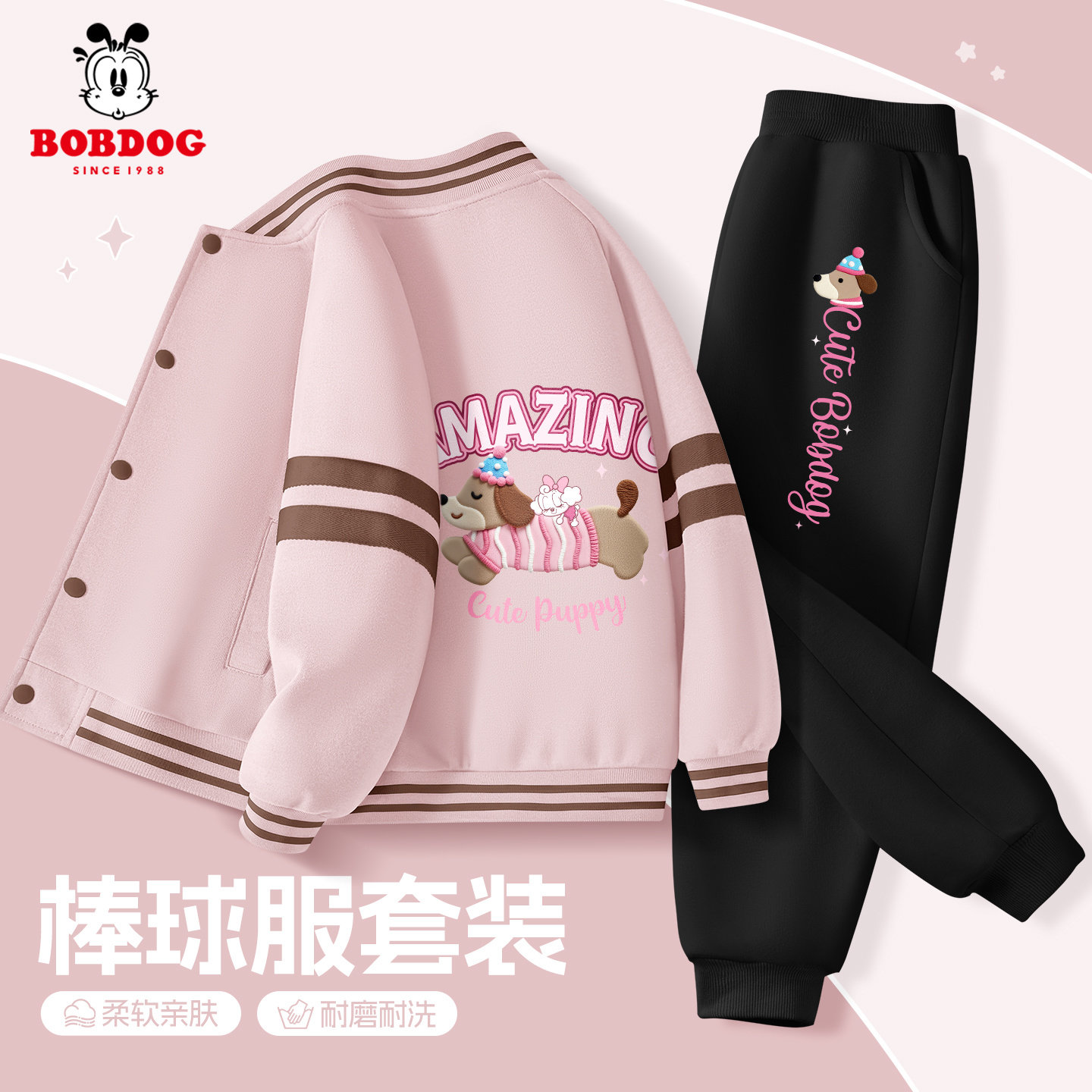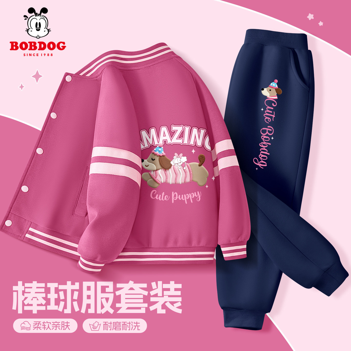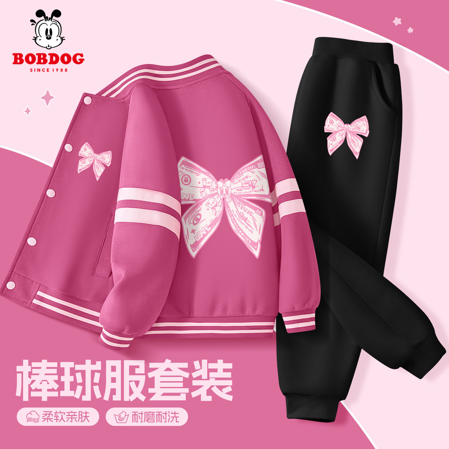 巴布豆女童套装春装2026新款洋气时髦女大童棒球服外套儿童运动服