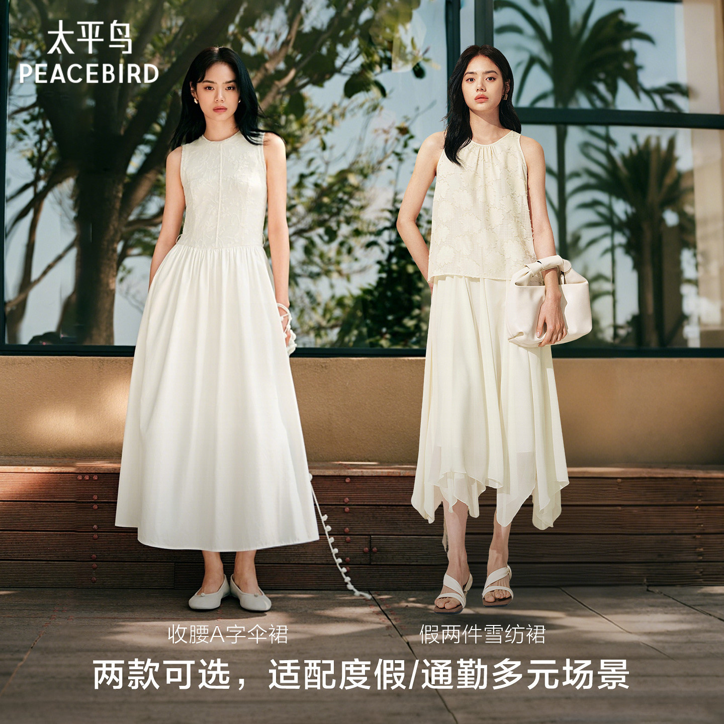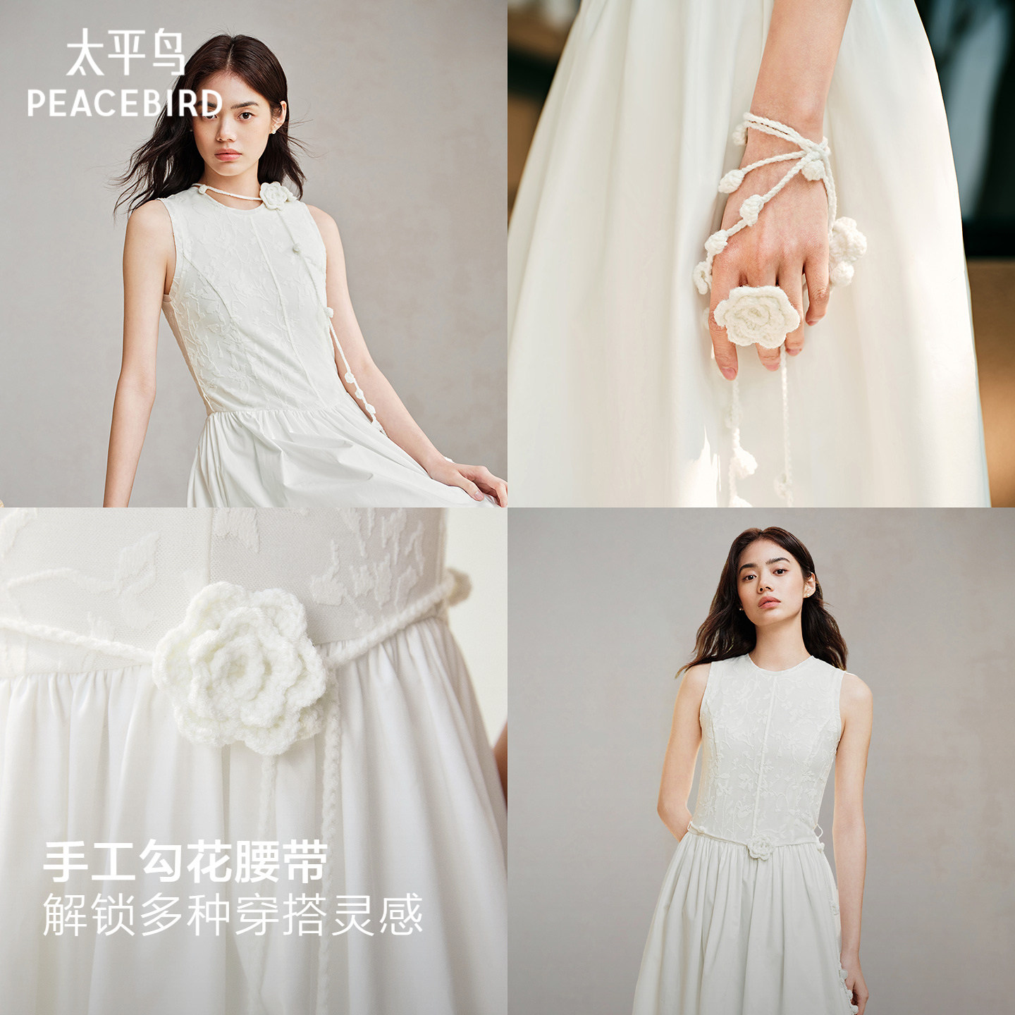 太平鸟柔雾小白裙收腰显瘦白色法式连衣裙女夏季新款波嬉度假长裙