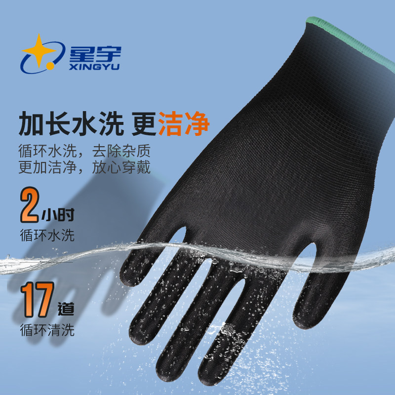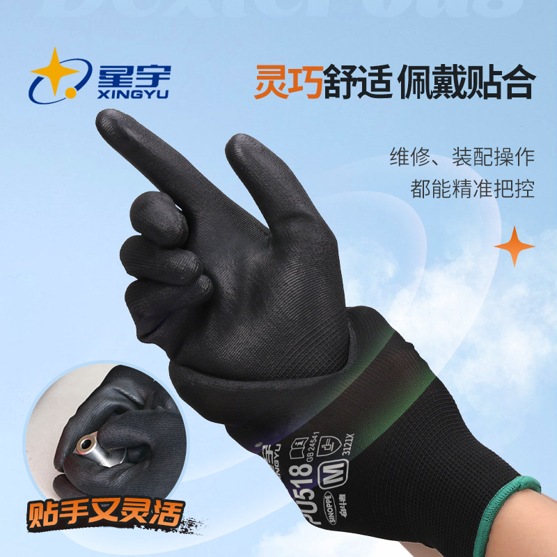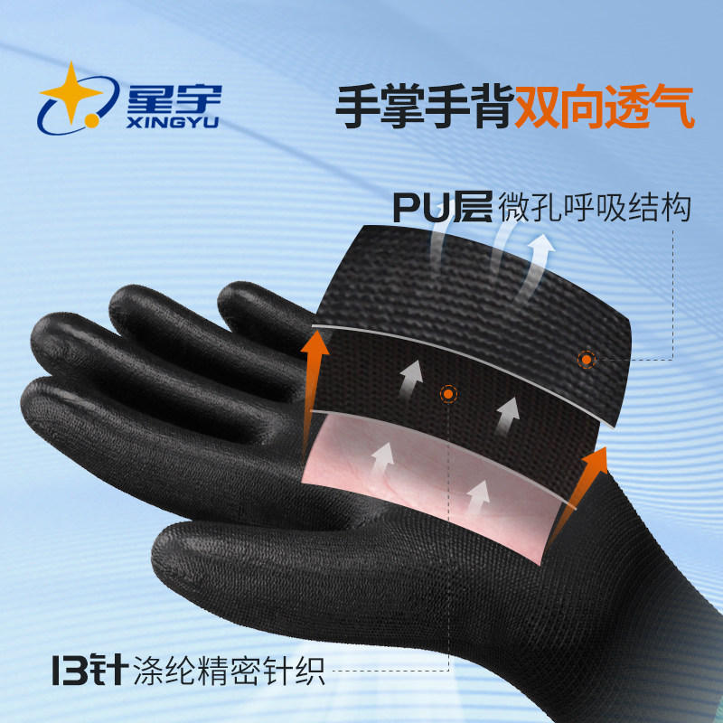 星宇透气pu涂掌手套薄款劳保工作耐磨劳动干活防护胶皮工业手套