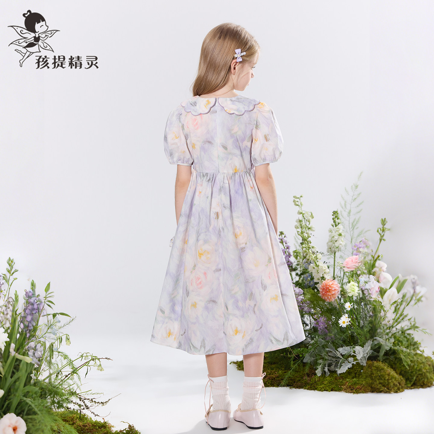 女童玫瑰花纯棉连衣裙2026夏装新款洋气中大童夏季裙子儿童公主裙