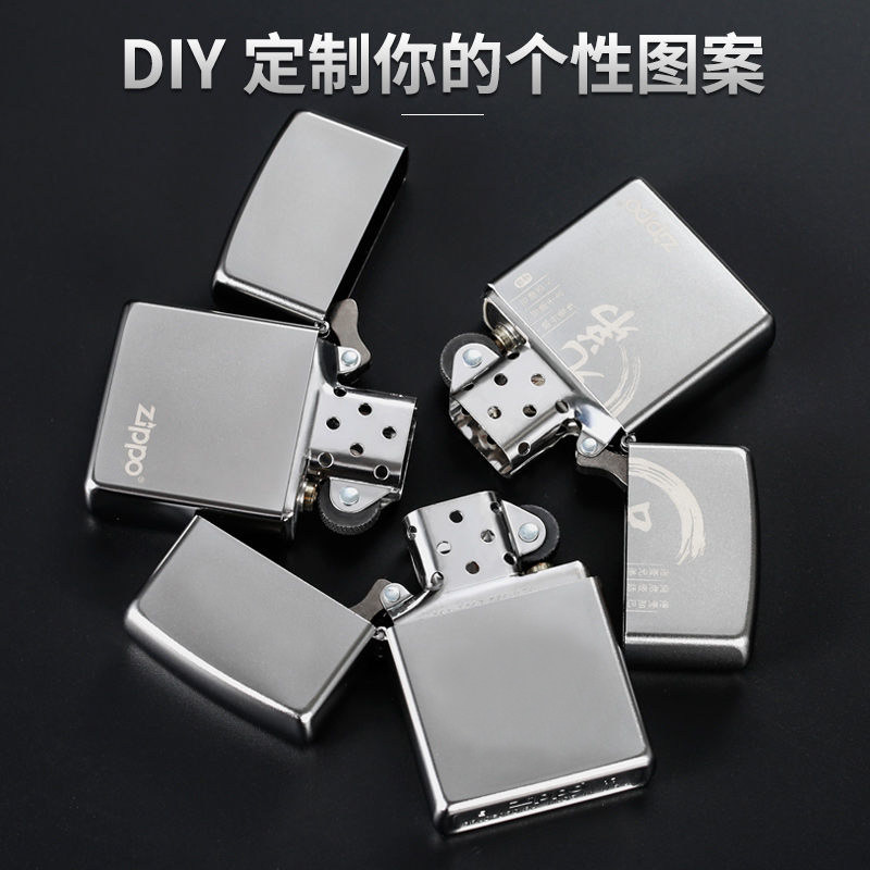 煤油打火机zippo经典镀铬白磨砂男款防风煤油 雕刻字定制送礼物品