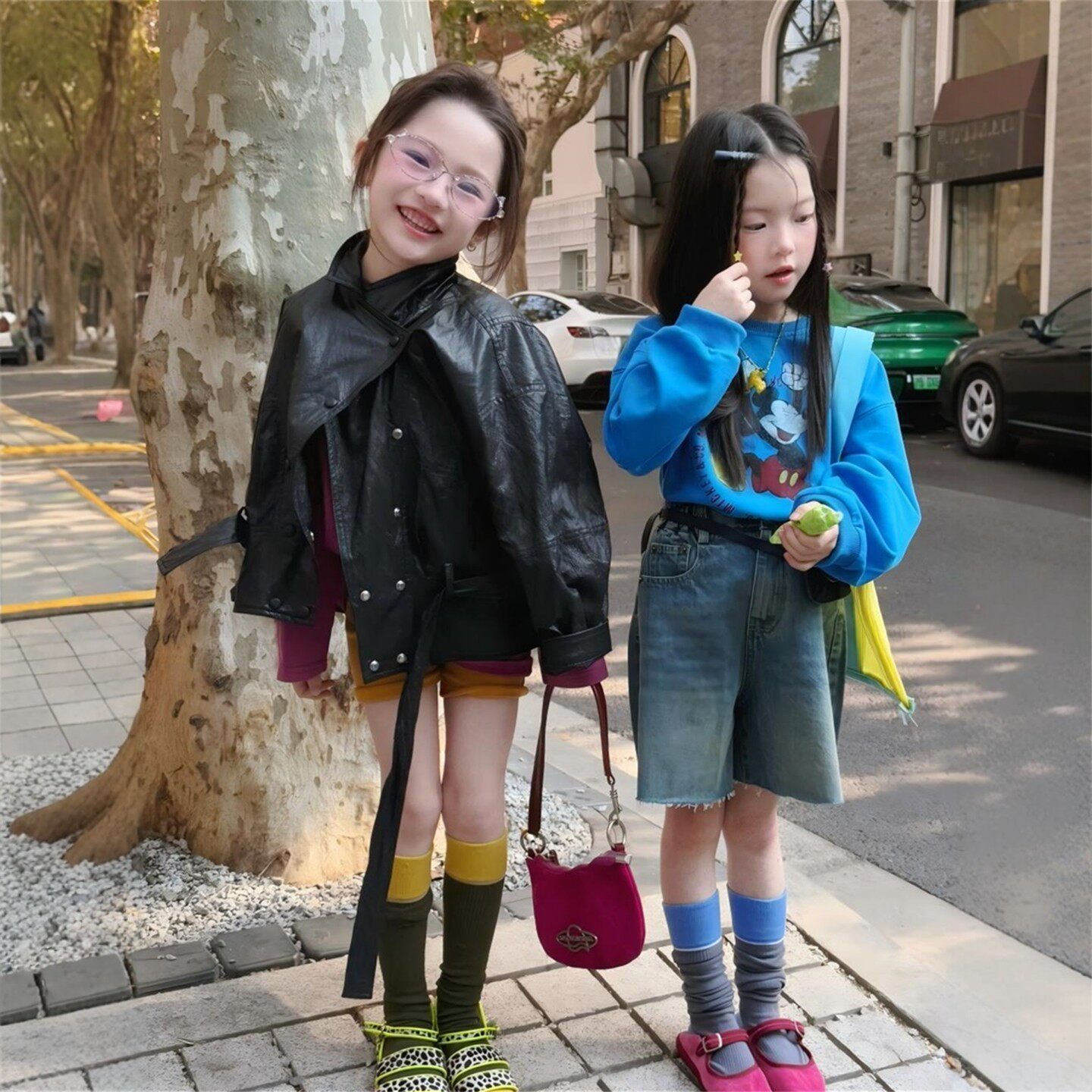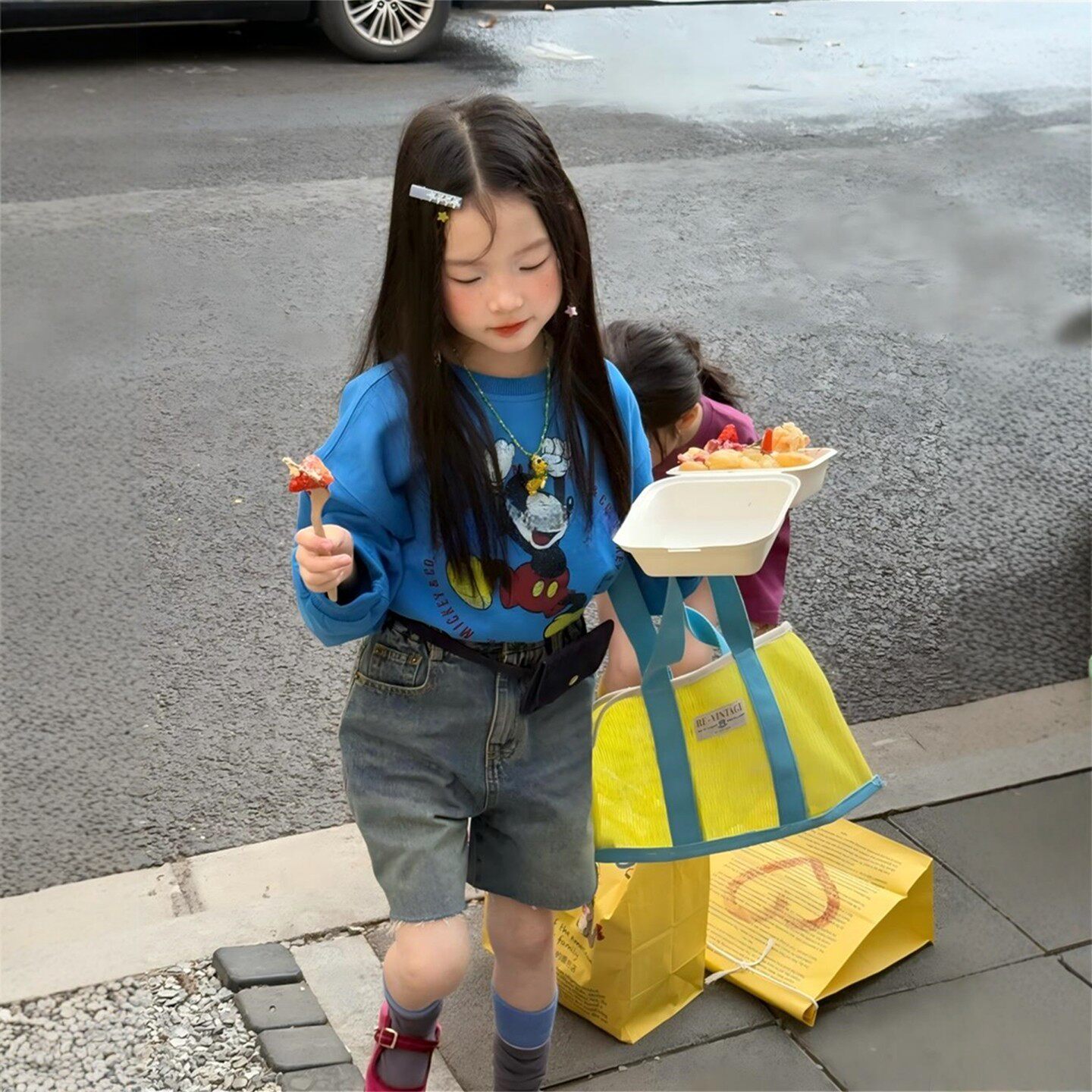 韩国卡通米奇印花卫衣套装女童休闲百搭长袖纯棉T恤上衣牛仔短裤t