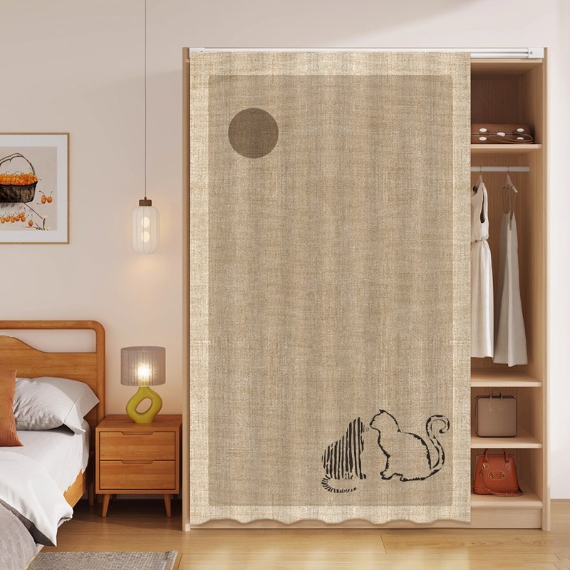 无门开放式衣柜专用遮挡帘高级感家用货架书柜免打孔滑轨防尘布帘
