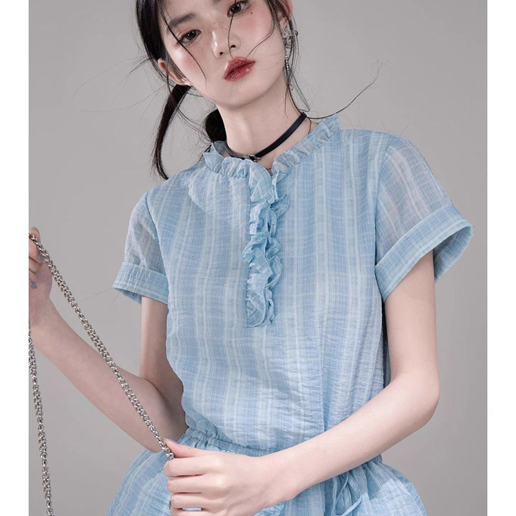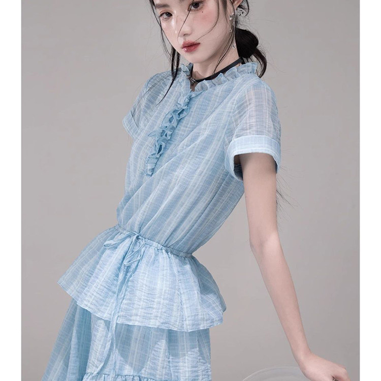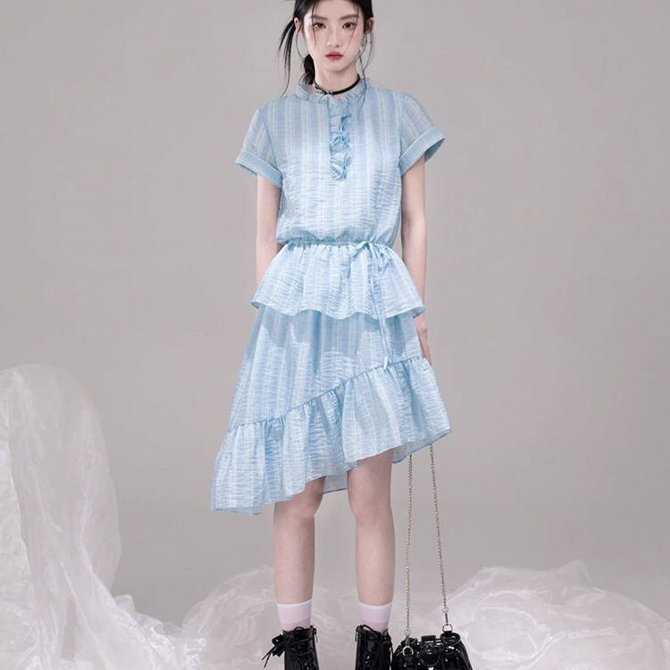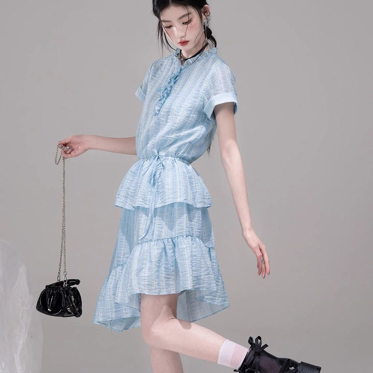 小个子减龄高级感甜美双层木耳花边显瘦雪纺短款吊带连衣裙子女夏