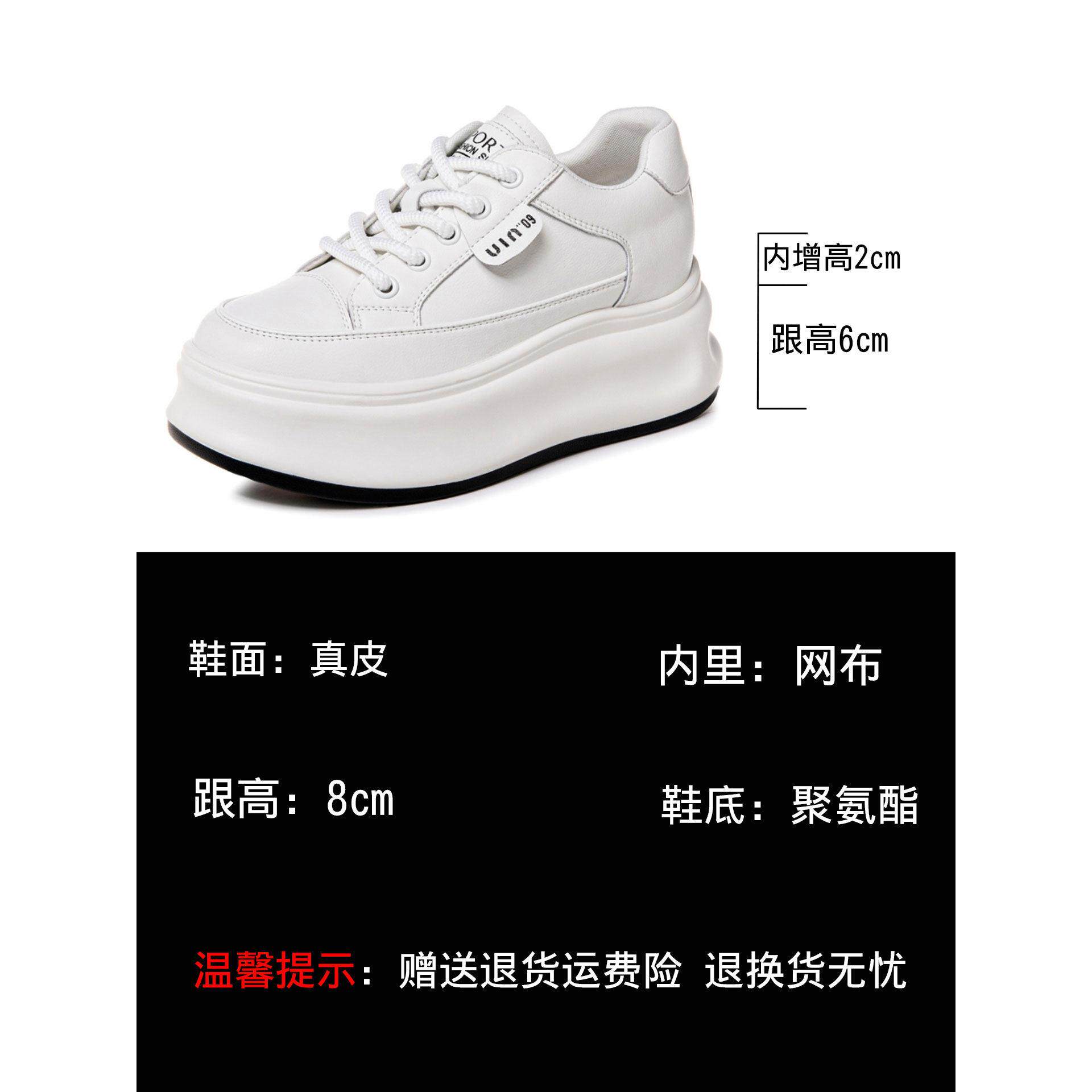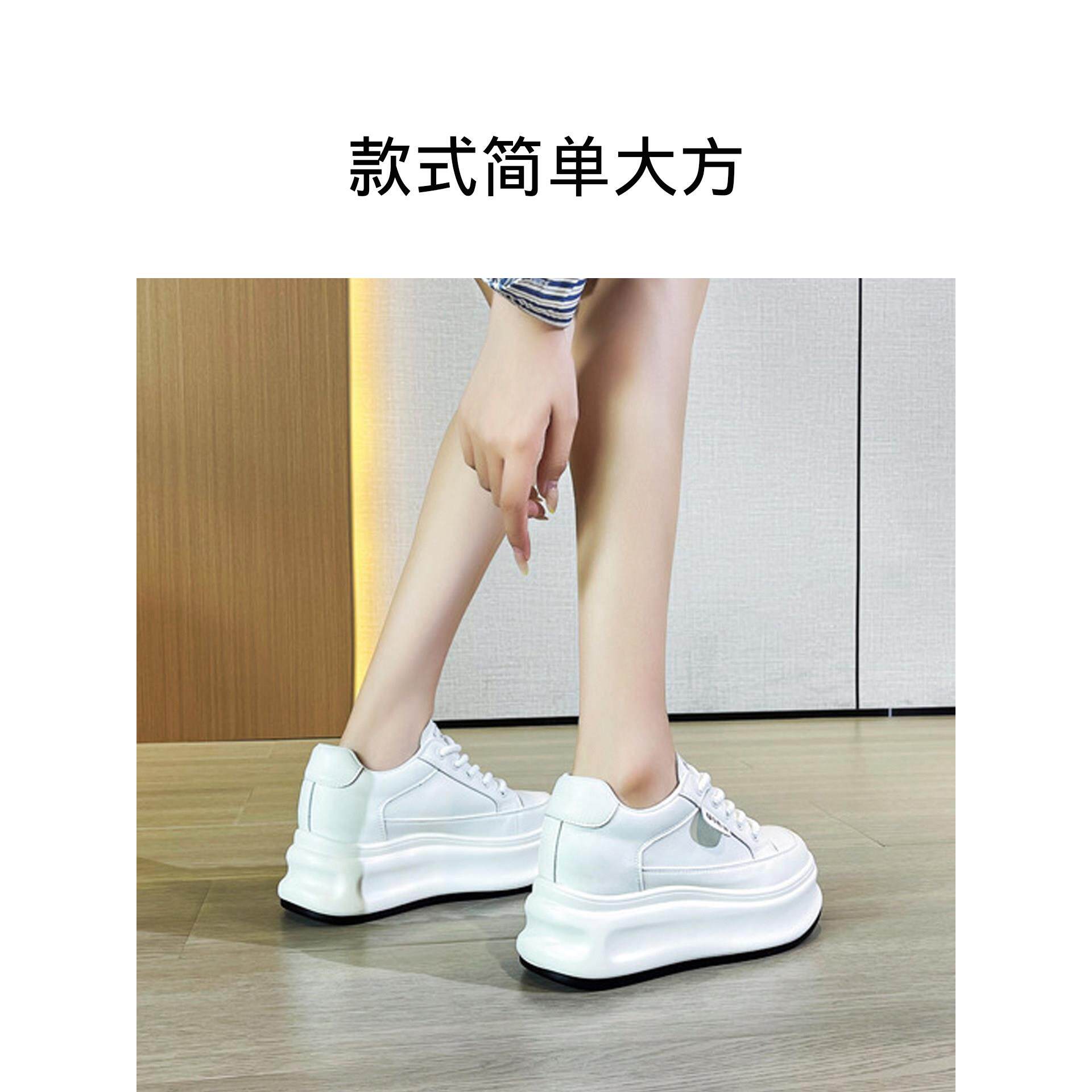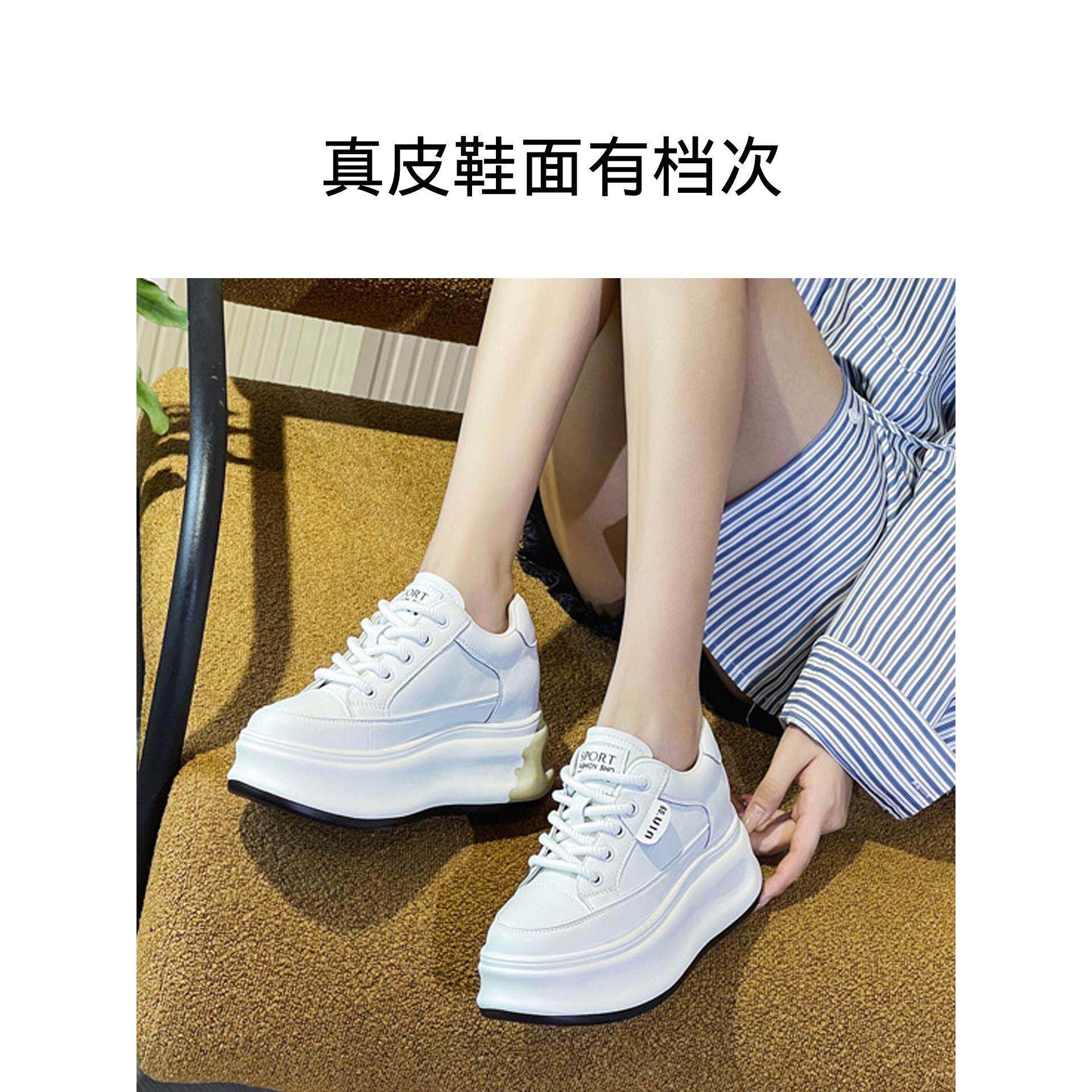 真皮内增高女鞋2025新款隐形软底不累脚8cm小个子运动单鞋小白鞋