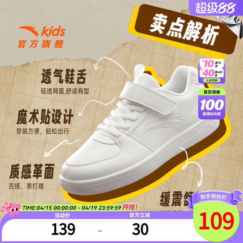 开学季小白鞋安踏儿童板鞋2026新款男大童耐磨女童春夏百搭运动鞋